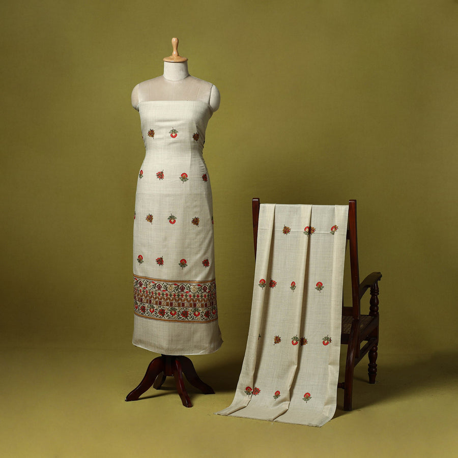 White 3pc embroidered merino wool unstitched dress material is perfect for elegant winter wear. Made from fine merino wool, it offers warmth, comfort and a rich texture. The set includes fabric for the top, bottom and dupatta, each adorned with beautiful embroidery. Ideal for stitching into stylish suits for casual or festive occasions, it’s a perfect choice for graceful and cozy winter outfits.
