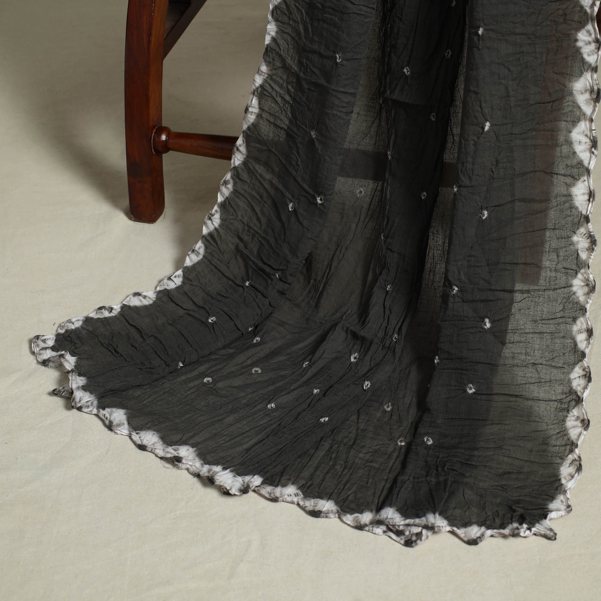 Black - Kutch Handwoven Merino Wool Tie-Dye Bandhani Shawl 01