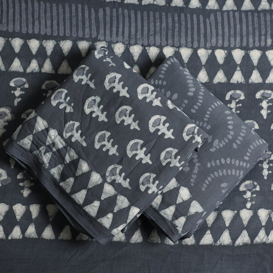 Black - Hand Batik Print Cotton 3pc Unstitched Dress Material 04