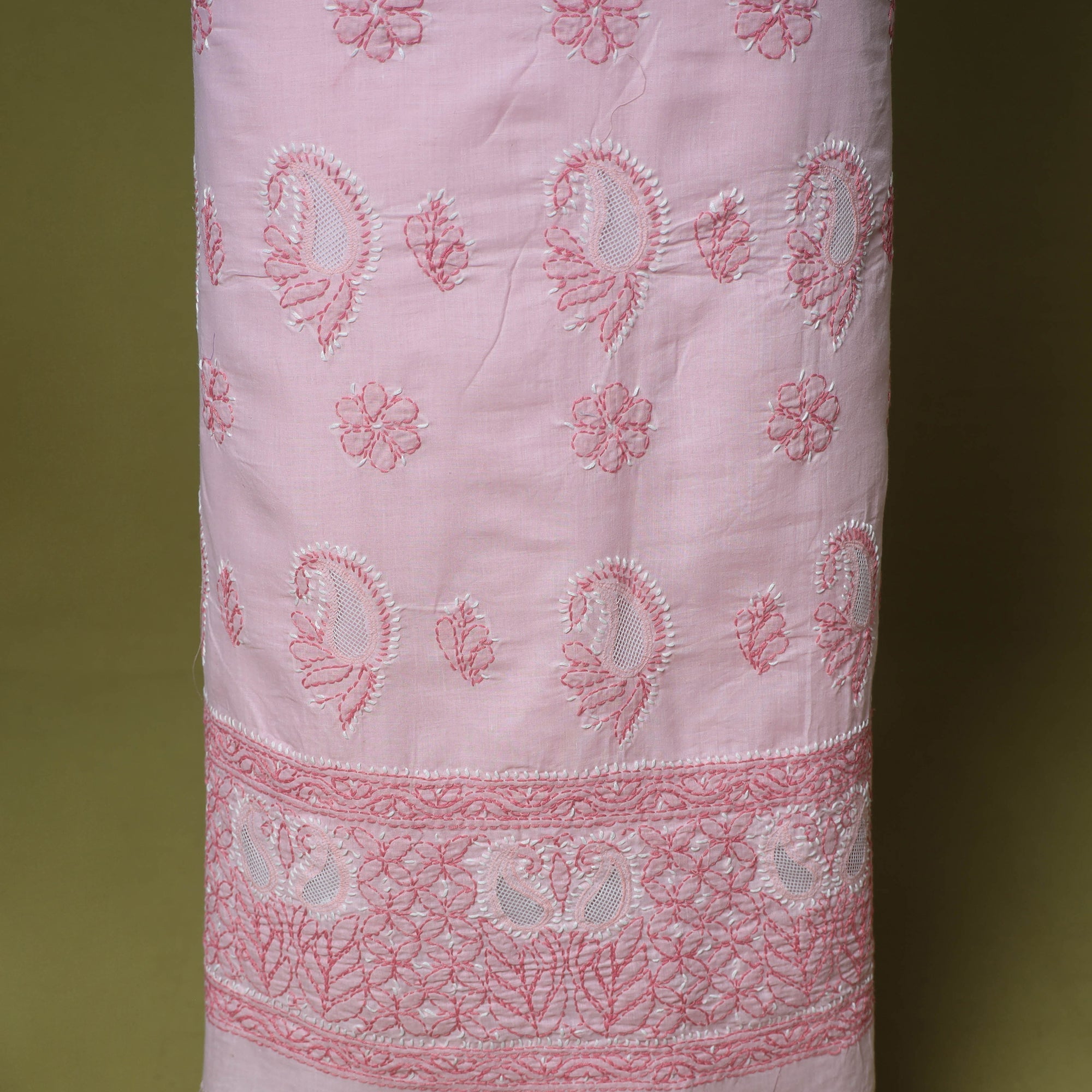 This pink 3pc cotton chikankari dress material reflects the heritage of Lucknow’s intricate embroidery. Created with delicate needlework, the motifs look graceful and refined on fabric. The set comes with a cotton top, bottom, and dupatta, offering both comfort and charm. Ideal for everyday wear or special occasions, this Chikankari suit is a timeless choice that brings tradition into your style.
