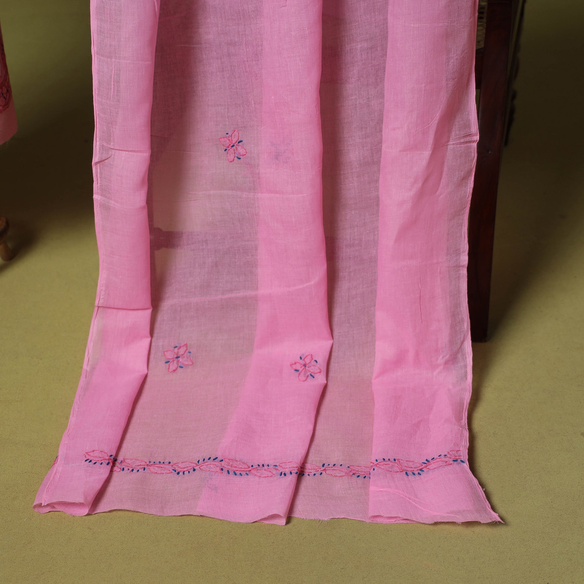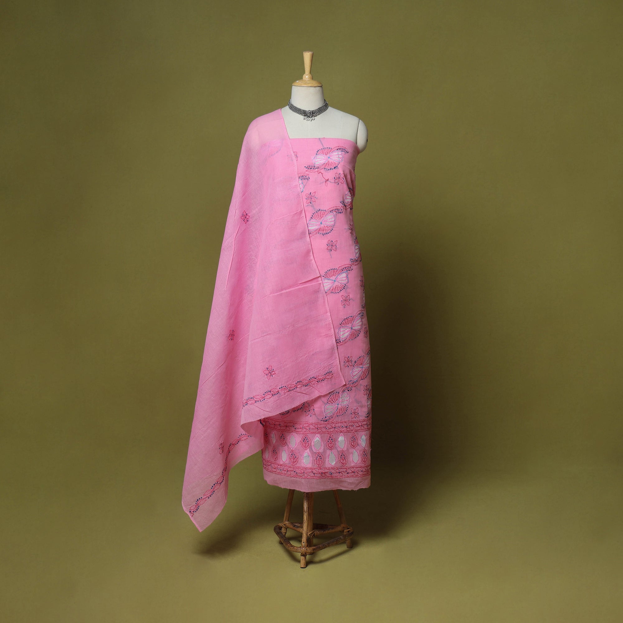 Pink - 3pc Hand Embroidery Cotton Lucknow Chikankari Dress Material 04