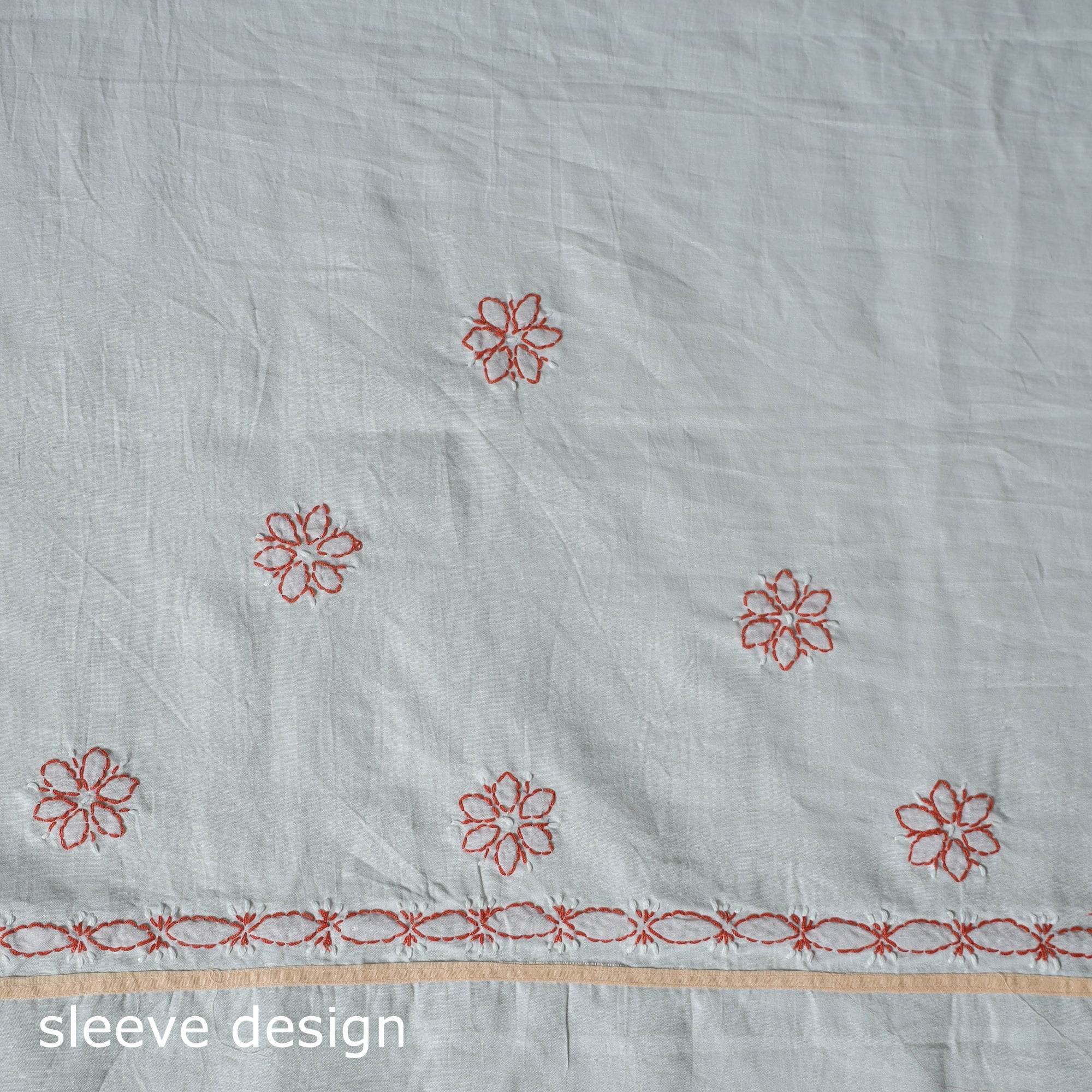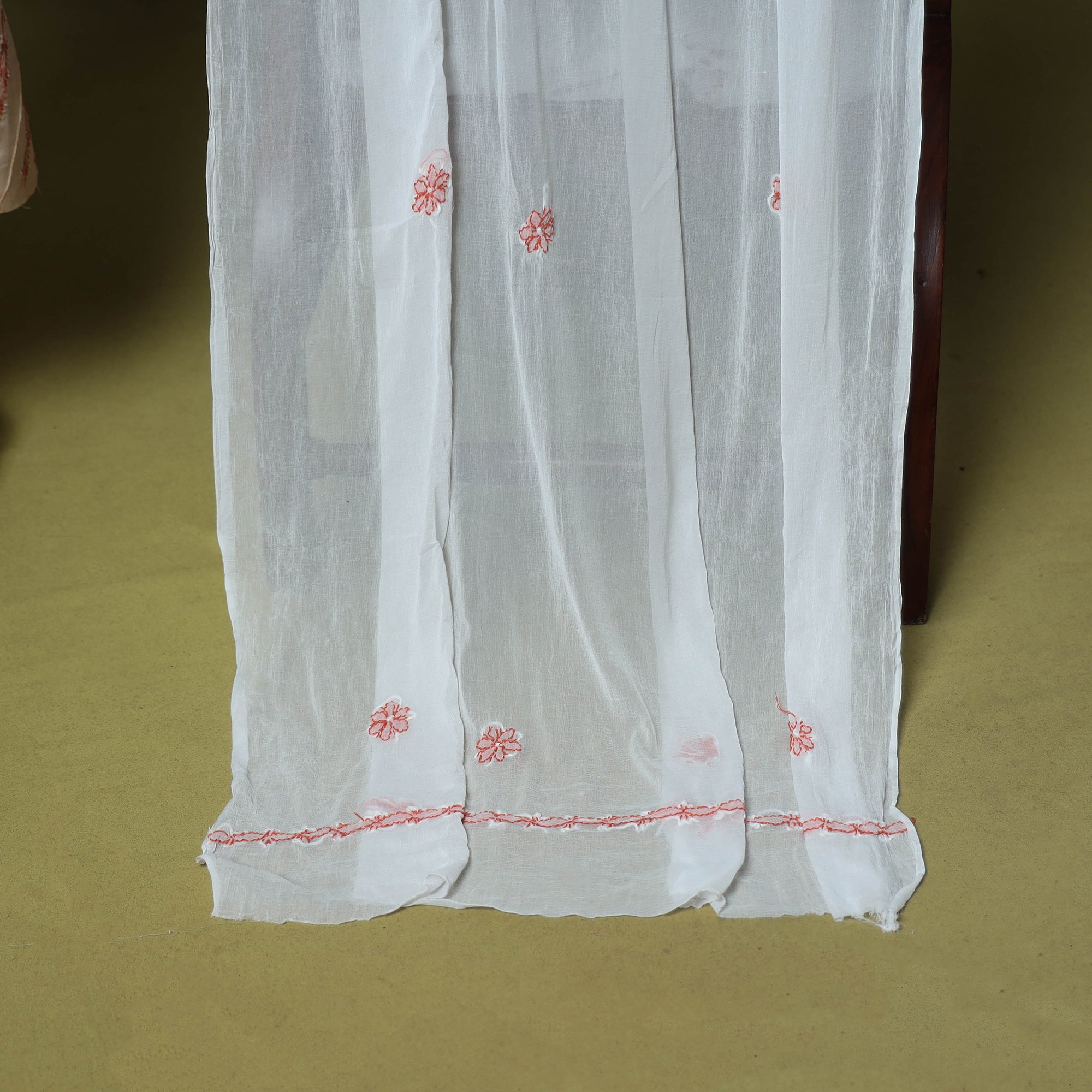 This peach 3pc cotton chikankari dress material reflects the heritage of Lucknow’s intricate embroidery. Created with delicate needlework, the motifs look graceful and refined on fabric. The set comes with a cotton top, bottom, and dupatta, offering both comfort and charm. Ideal for everyday wear or special occasions, this Chikankari suit is a timeless choice that brings tradition into your style.