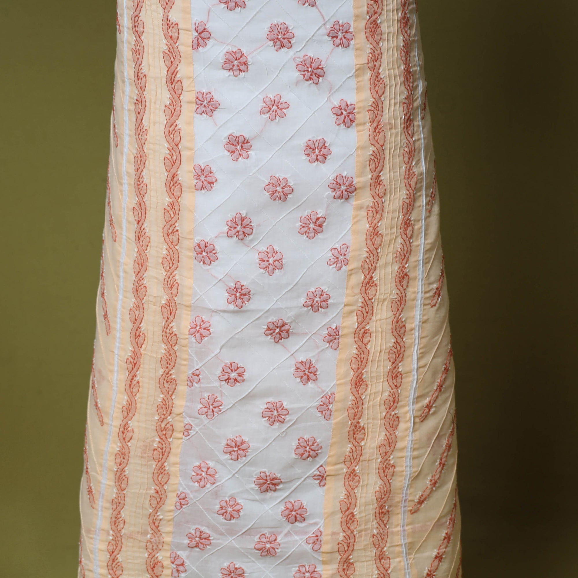 Orange - Lucknowi Chikankari Hand Work Pochampally Ikat Unstitched Kurta Material (2.45M) 43