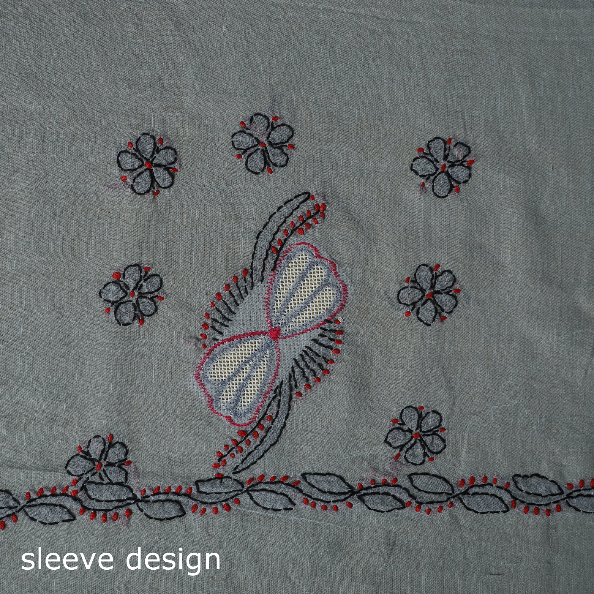 This grey 3pc cotton chikankari dress material reflects the heritage of Lucknow’s intricate embroidery. Created with delicate needlework, the motifs look graceful and refined on fabric. The set comes with a cotton top, bottom, and dupatta, offering both comfort and charm. Ideal for everyday wear or special occasions, this Chikankari suit is a timeless choice that brings tradition into your style.