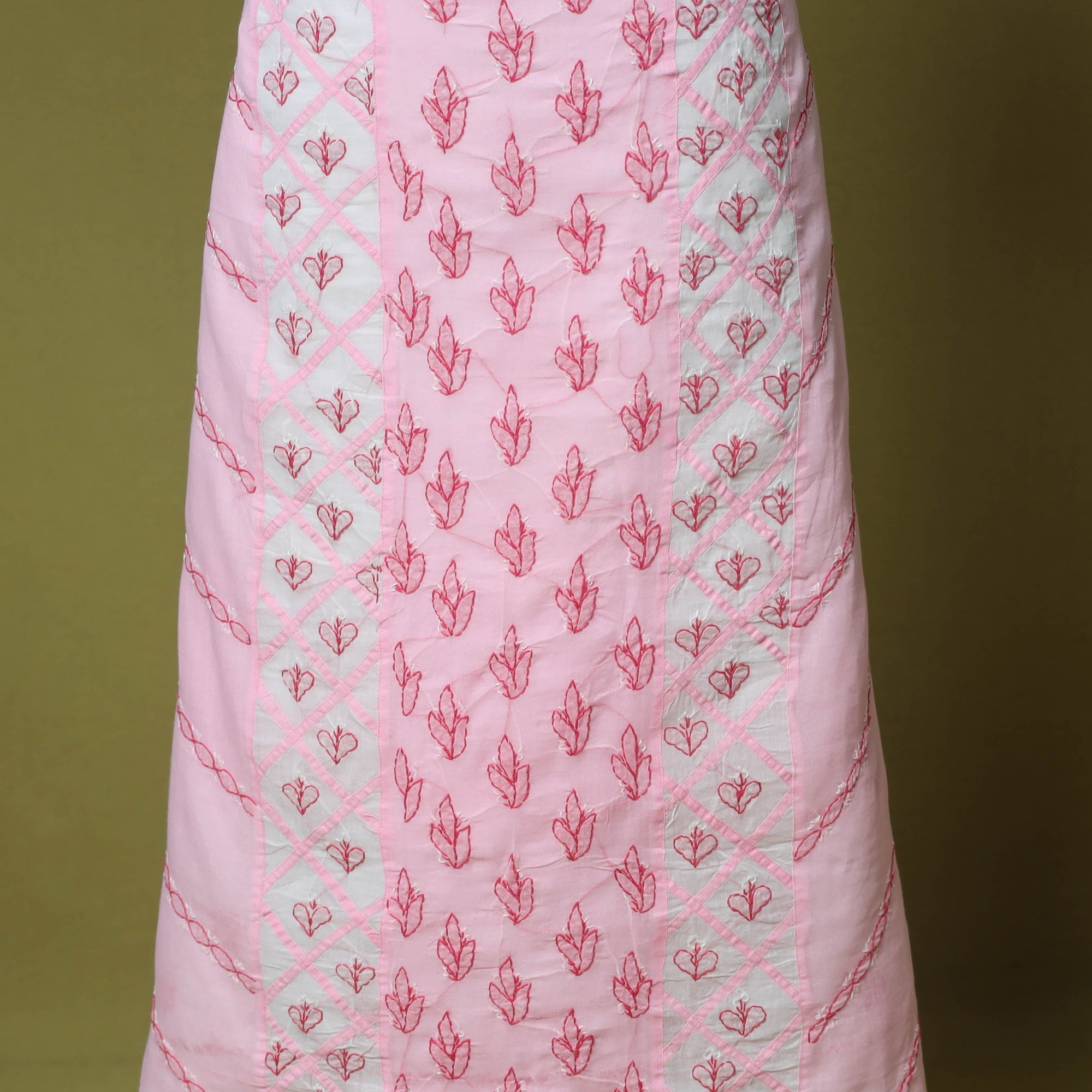 Pink - 3pc Hand Embroidery Cotton Lucknow Chikankari Dress Material 49