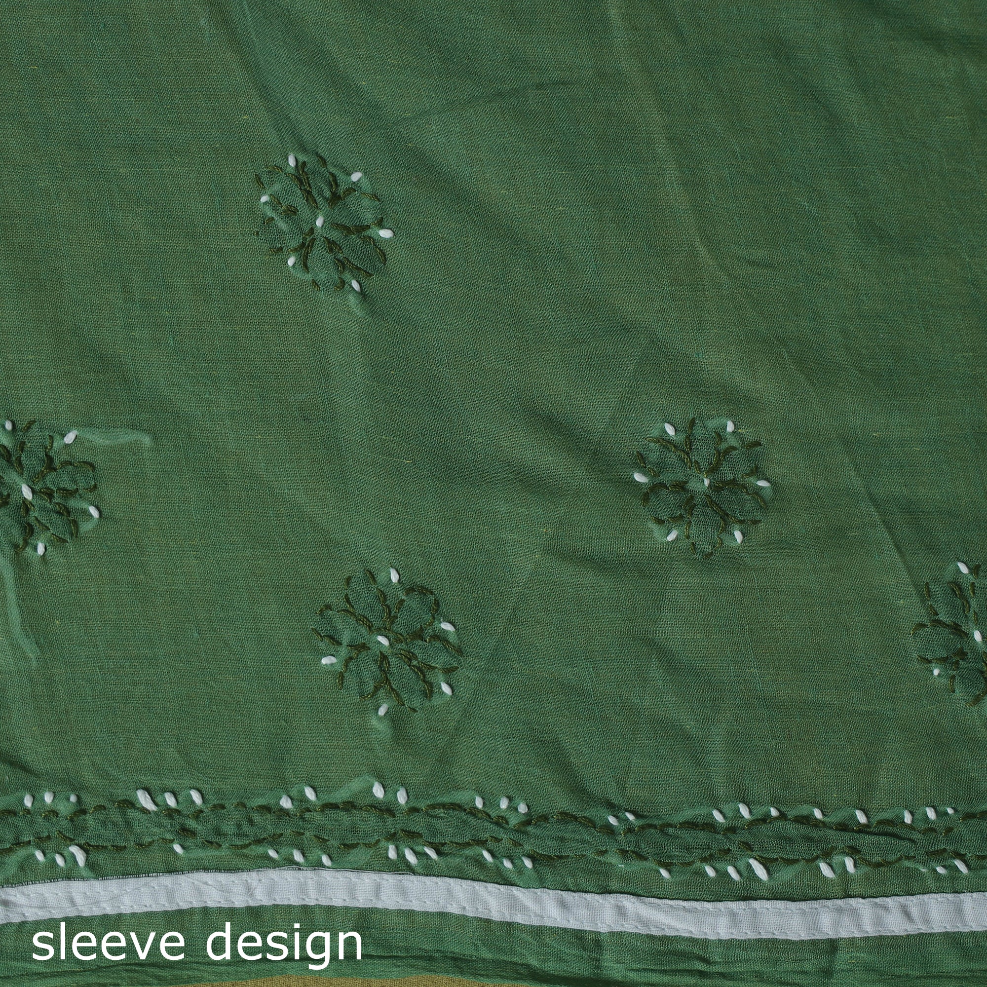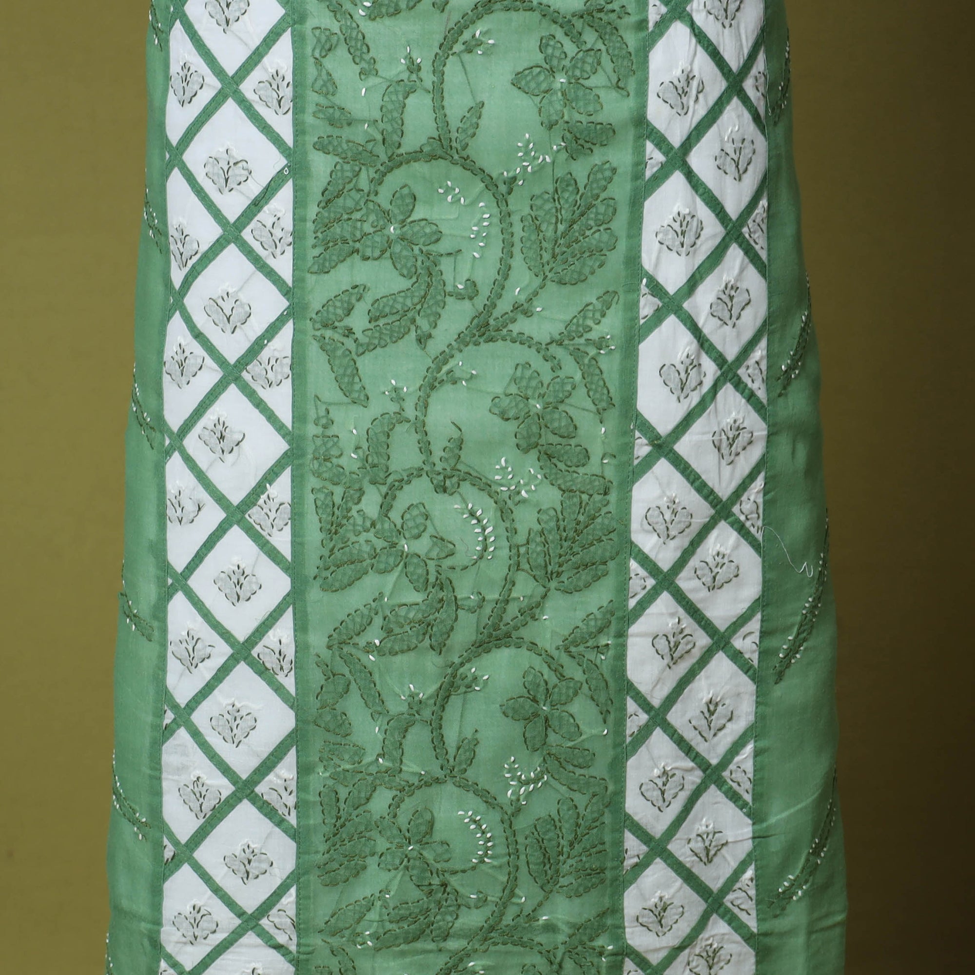 This green 3pc cotton chikankari dress material reflects the heritage of Lucknow’s intricate embroidery. Created with delicate needlework, the motifs look graceful and refined on fabric. The set comes with a cotton top, bottom, and dupatta, offering both comfort and charm. Ideal for everyday wear or special occasions, this Chikankari suit is a timeless choice that brings tradition into your style.