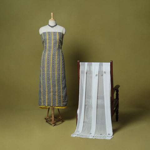Grey - Lucknowi Chikankari Work Bandhani Unstitched Kurta Material (2.5M) 127