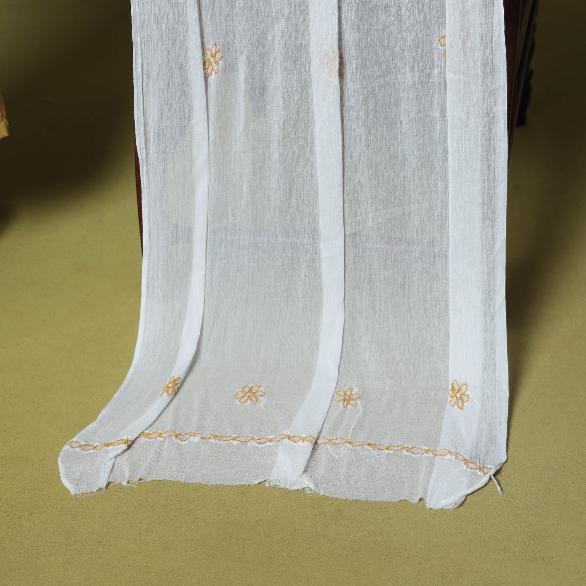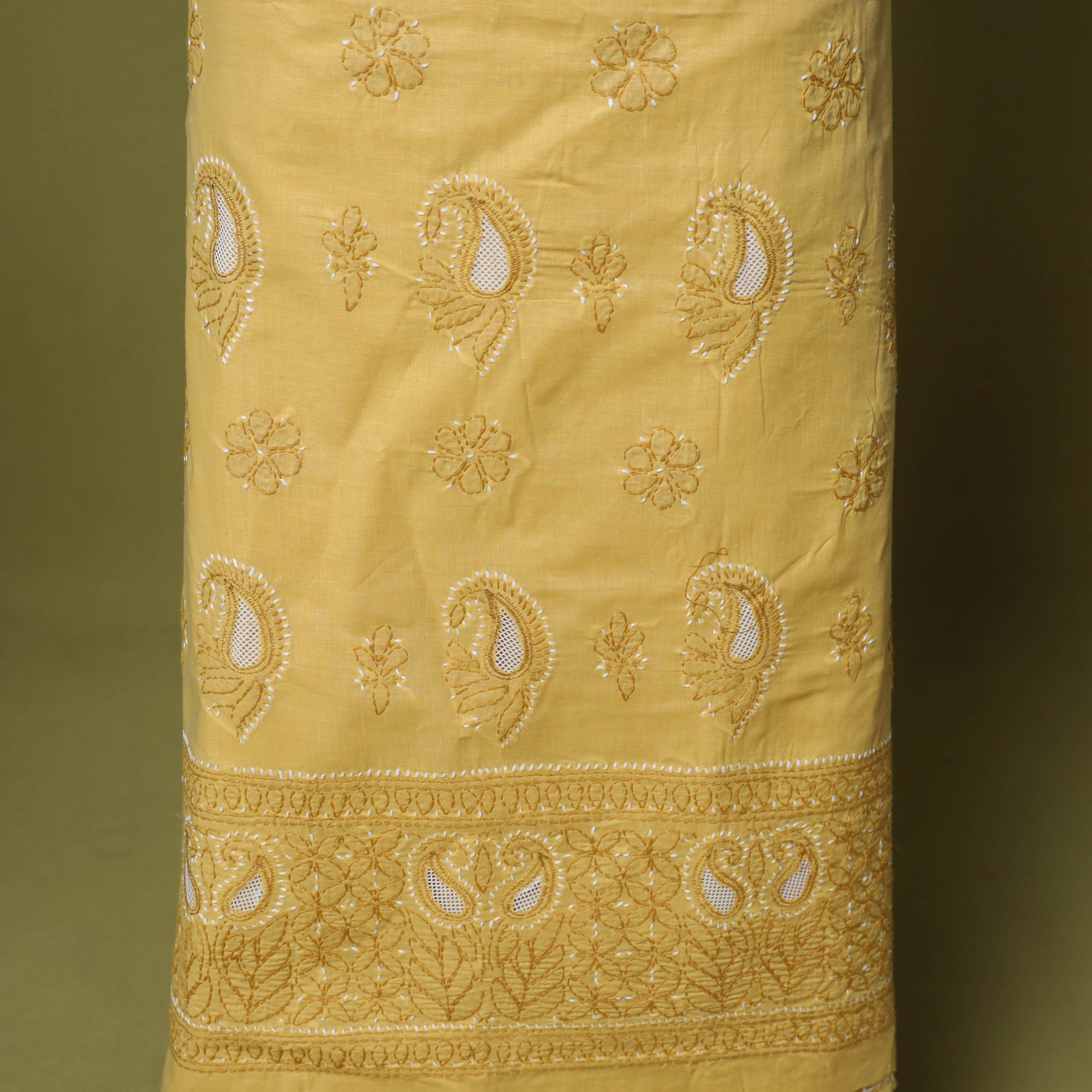 Chikankari is a popular embroidery work done with the help of a white cotton thread on fine white cotton material. It is also known as shadow work. Chikan is an extremely delicate and artfully done hand embroidery on fabrics like muslin, silk, chiffon, organza, net, etc