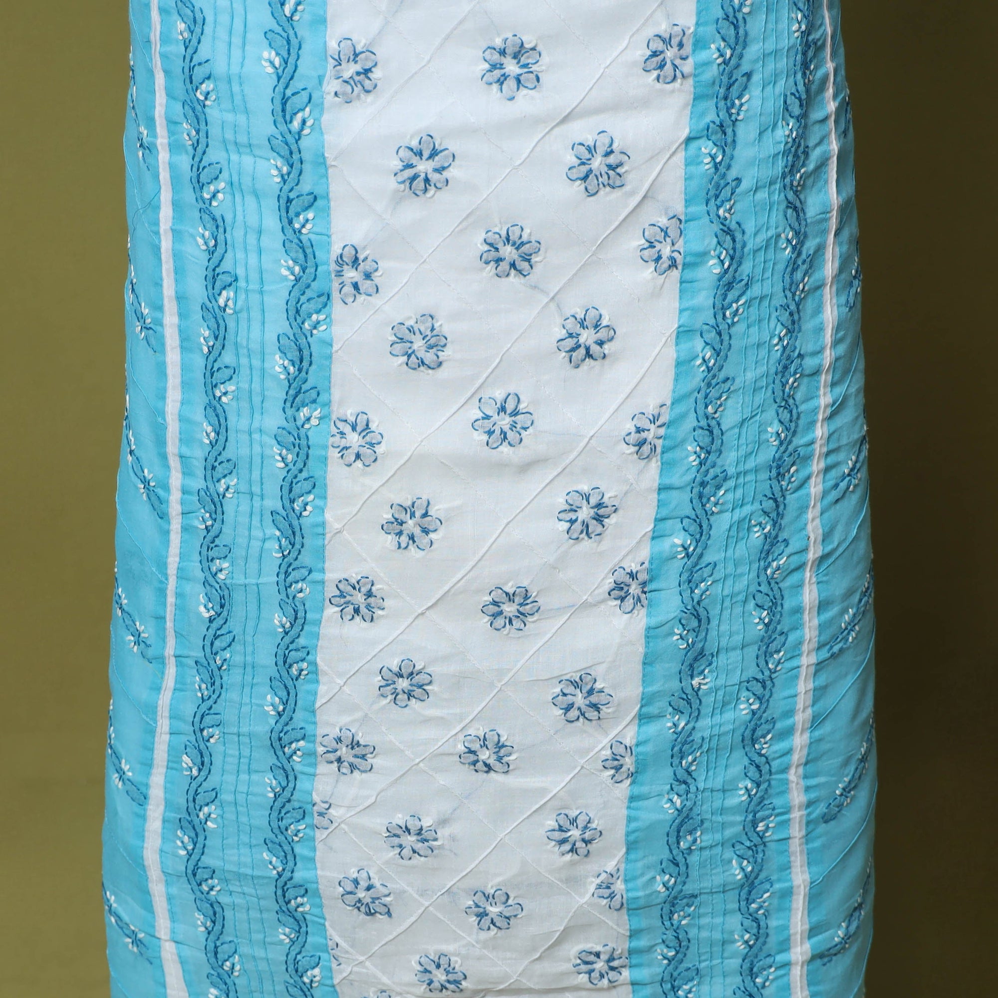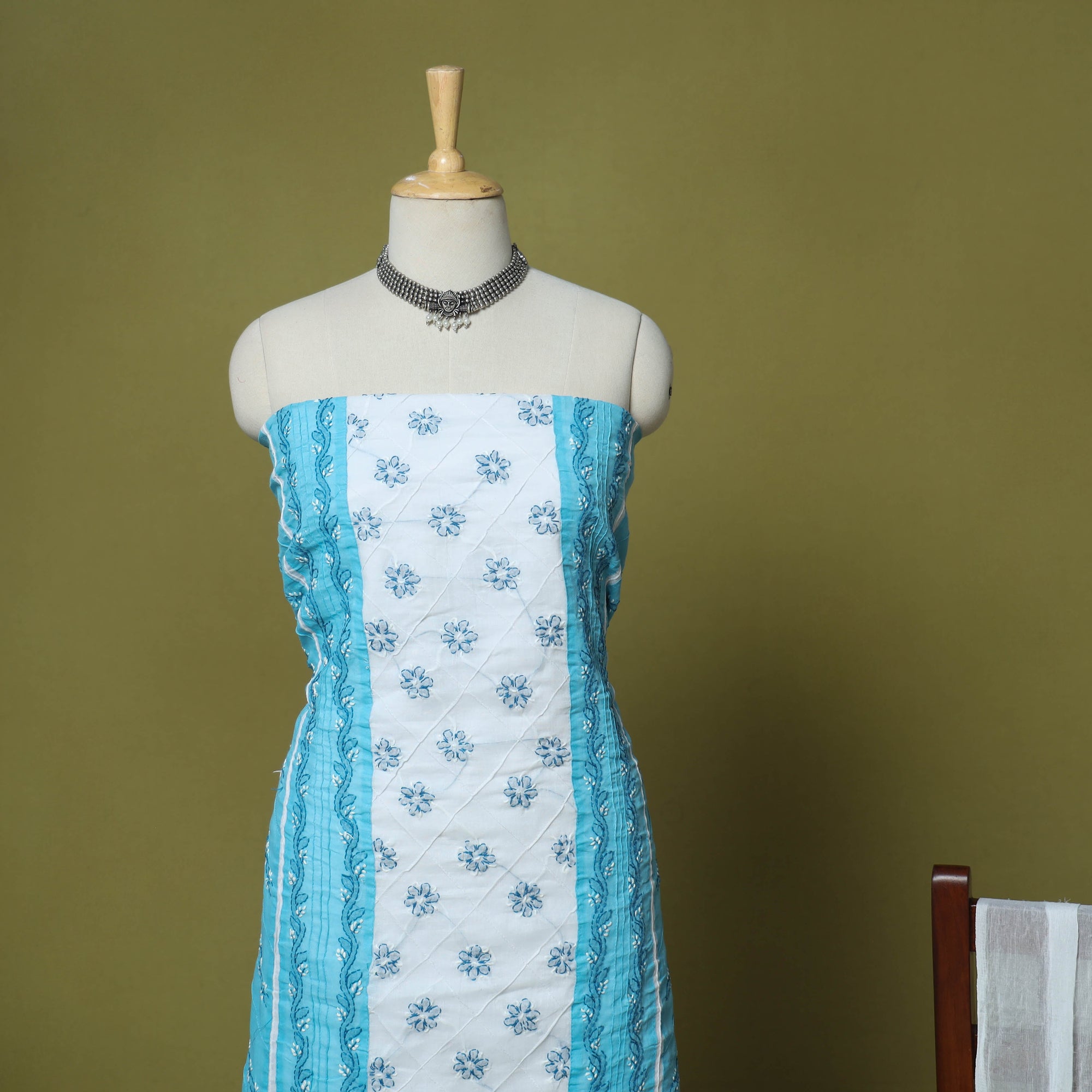 This blue 3pc cotton chikankari dress material reflects the heritage of Lucknow’s intricate embroidery. Created with delicate needlework, the motifs look graceful and refined on fabric. The set comes with a cotton top, bottom, and dupatta, offering both comfort and charm. Ideal for everyday wear or special occasions, this Chikankari suit is a timeless choice that brings tradition into your style.