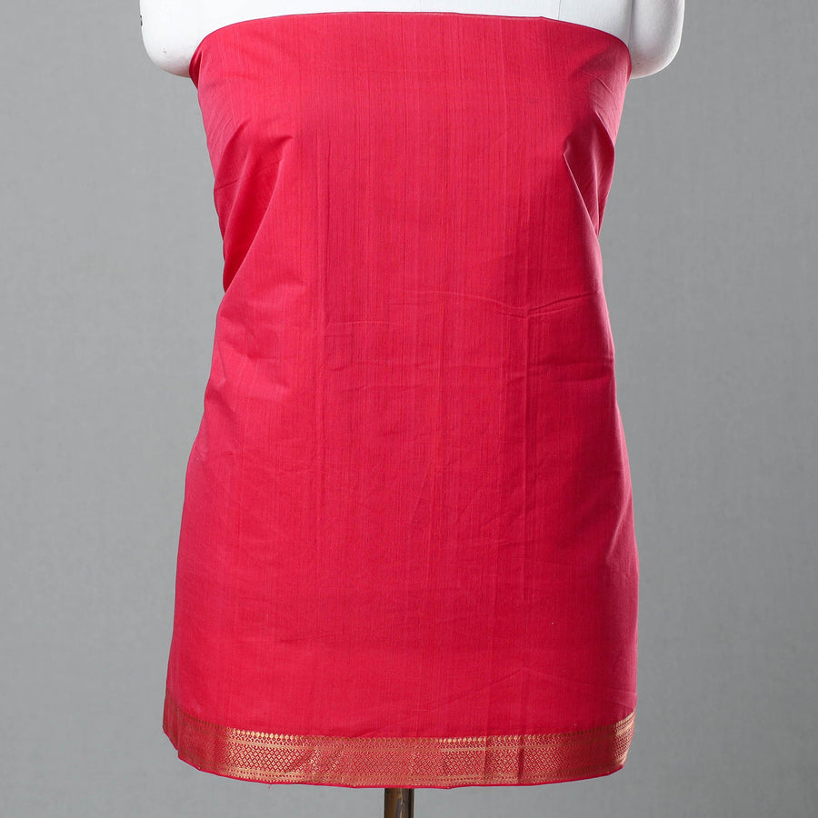 Red - Handloom Cotton Mangalagiri Fabric with Zari Border 16