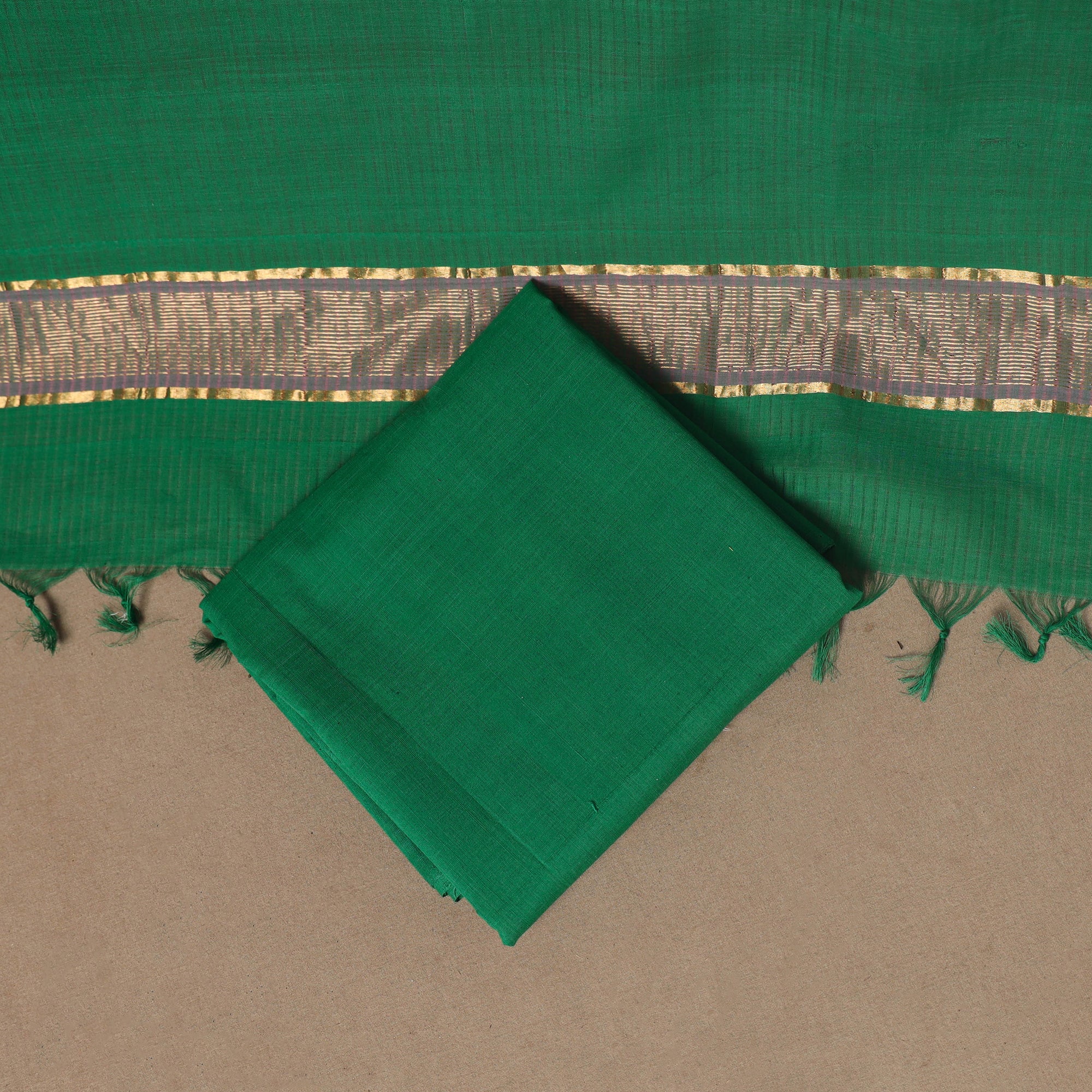 Green - Handloom Cotton Mangalagiri Fabric with Zari Border 14