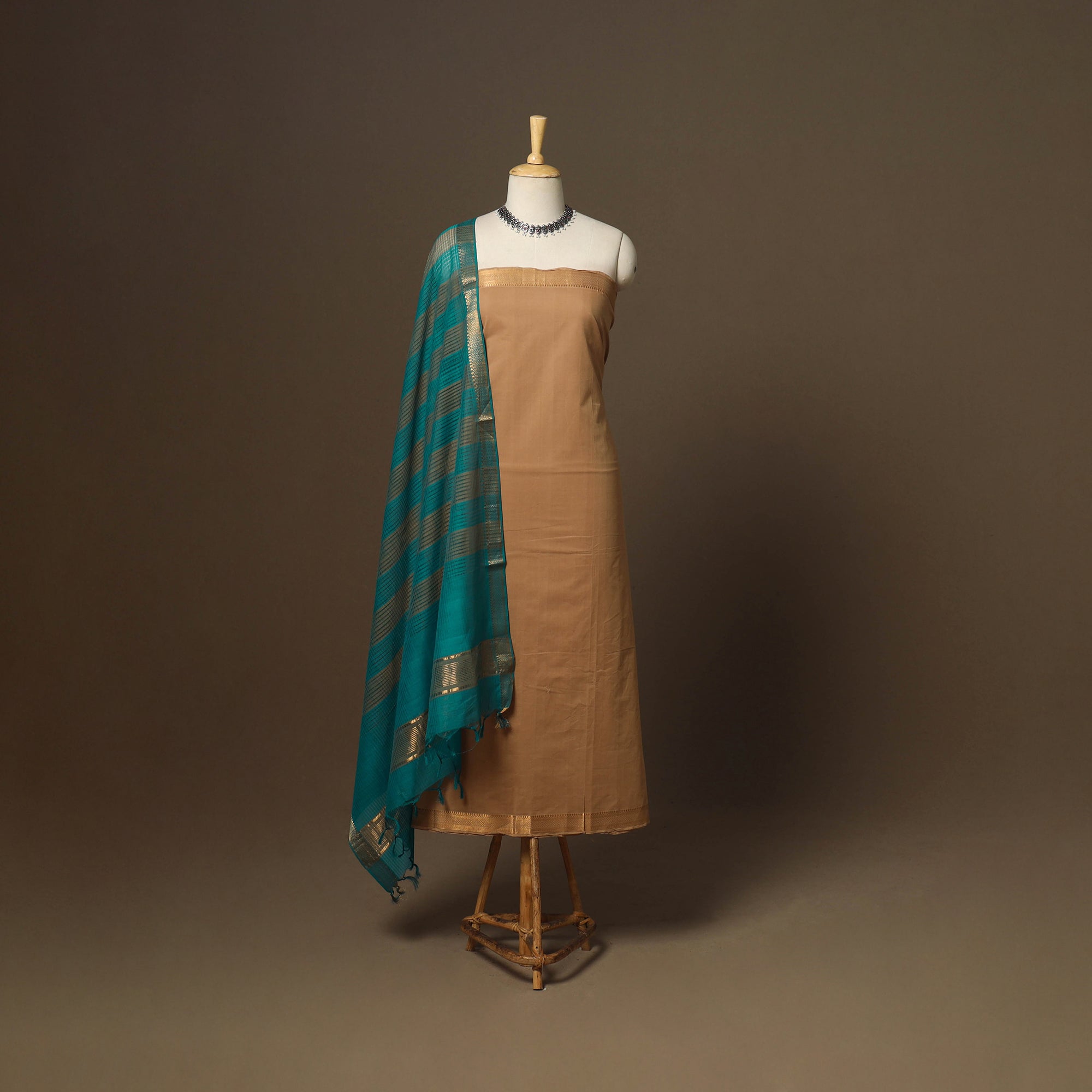 • Brown - 3pc handloom cotton unstitched mangalagiri dress