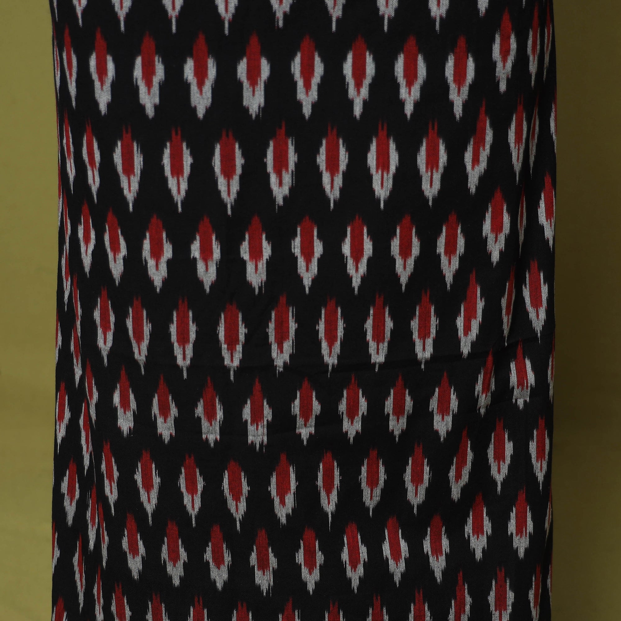 Embrace the beauty of this black 3pc pochampally Ikat cotton handloom dress material set from Telangana. The set includes a kurta/top, dupatta, and plain bottom piece. Ikat is a distinctive weaving technique where the yarns are dyed before weaving, resulting in striking geometric patterns. The vibrant colors combined with this traditional weaving style make every piece truly unique. Whether for a wedding, a party, or a cultural gathering, this dress material is a timeless choice.