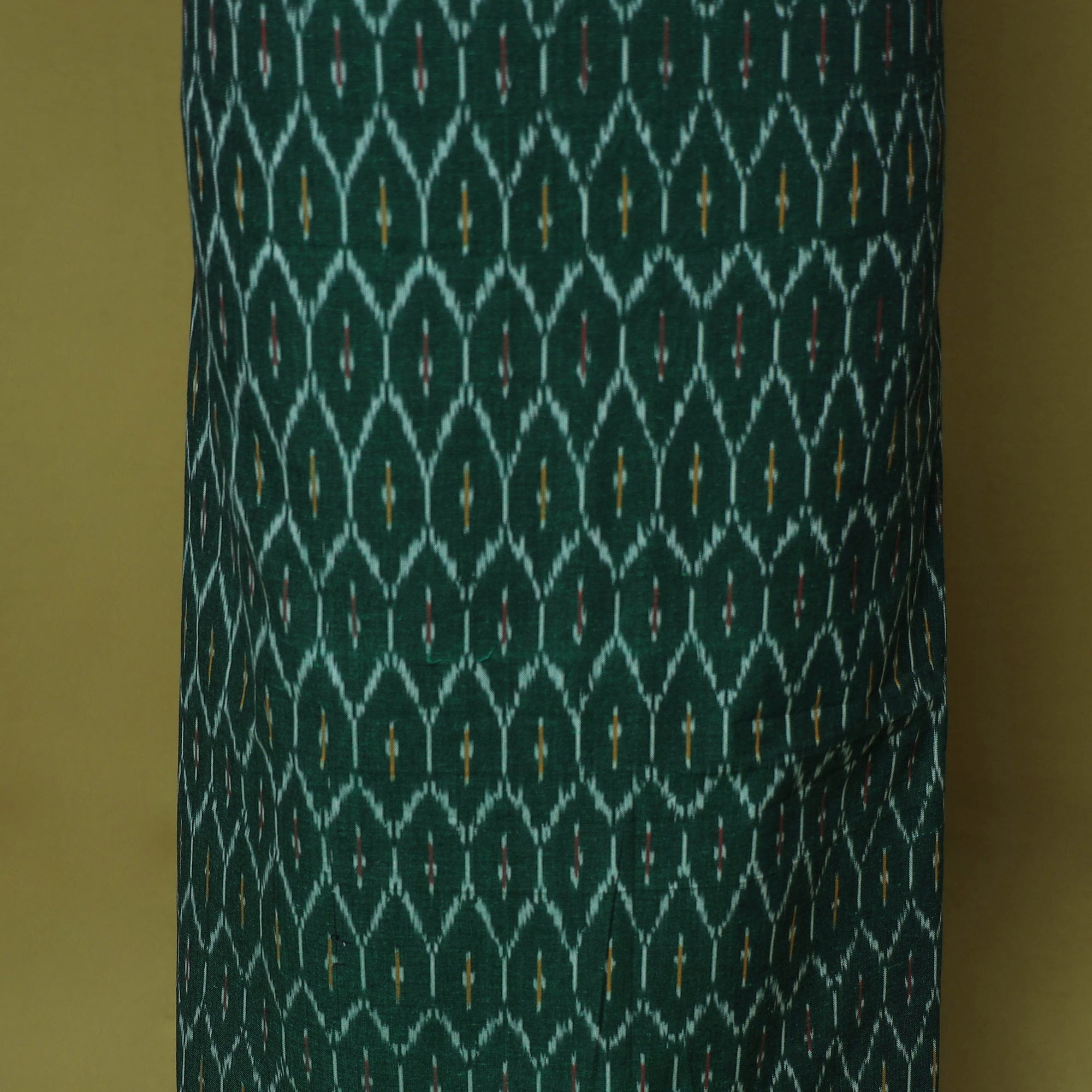 Embrace the beauty of this green 3pc pochampally Ikat cotton handloom dress material set from Telangana. The set includes a kurta/top, dupatta, and plain bottom piece. Ikat is a distinctive weaving technique where the yarns are dyed before weaving, resulting in striking geometric patterns. The vibrant colors combined with this traditional weaving style make every piece truly unique. Whether for a wedding, a party, or a cultural gathering, this dress material is a timeless choice.