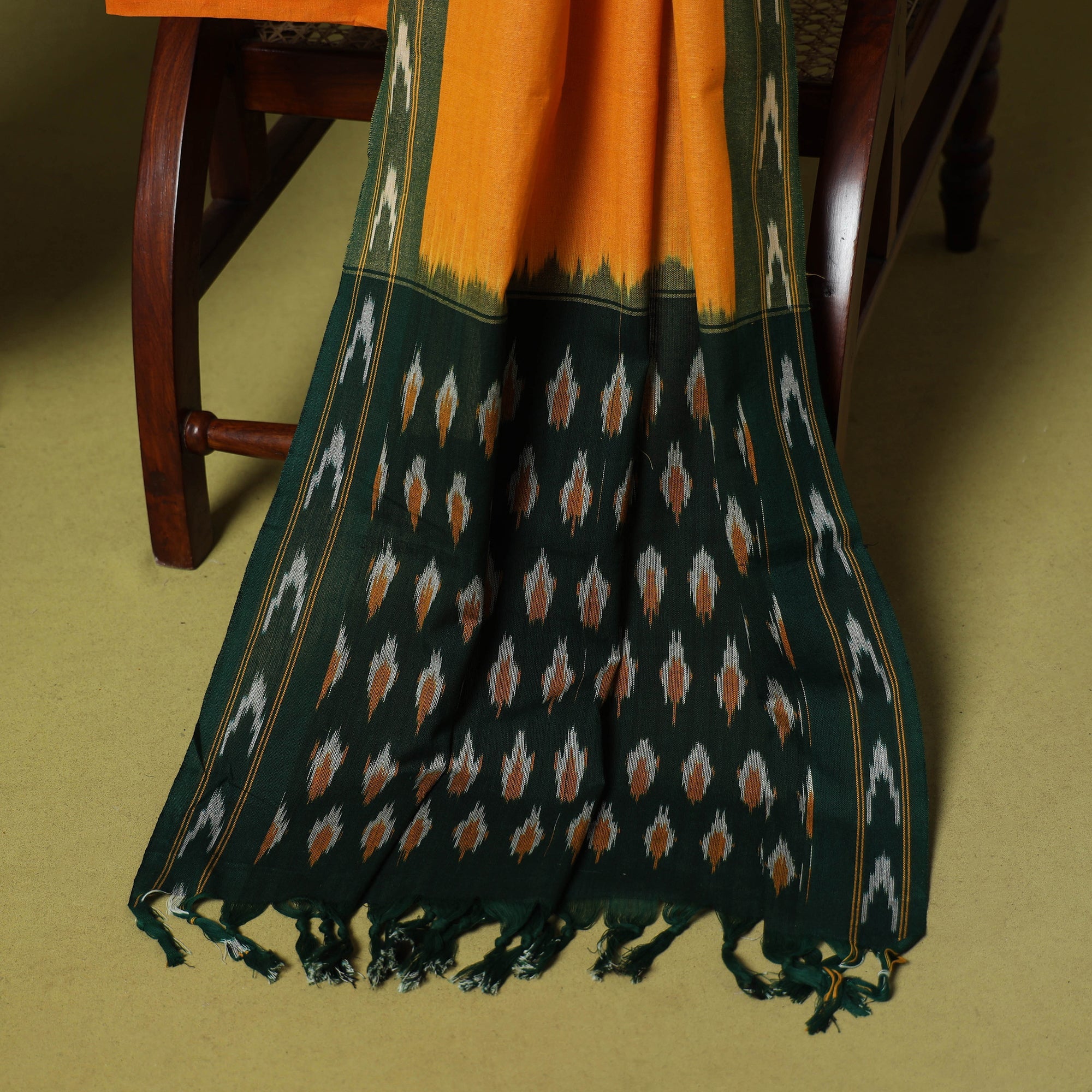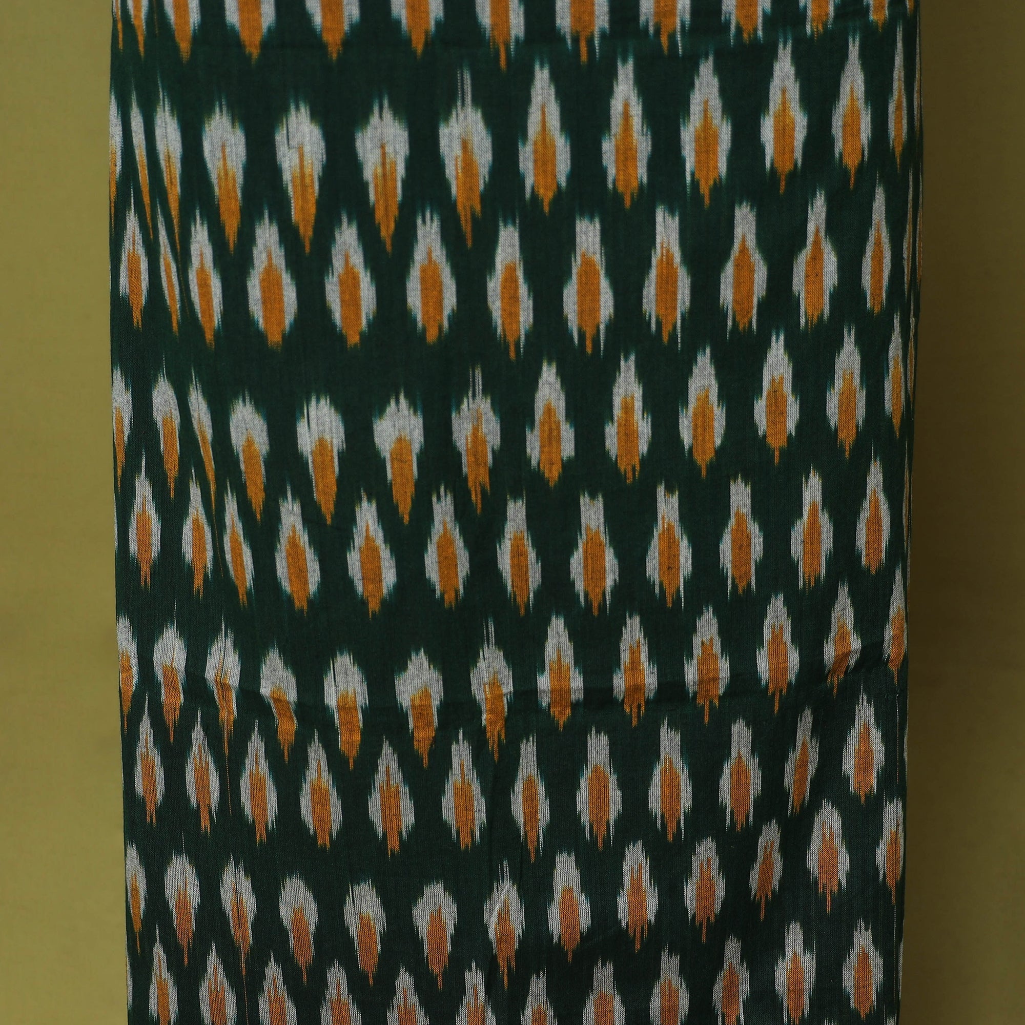 Embrace the beauty of this green 3pc pochampally Ikat cotton handloom dress material set from Telangana. The set includes a kurta/top, dupatta, and plain bottom piece. Ikat is a distinctive weaving technique where the yarns are dyed before weaving, resulting in striking geometric patterns. The vibrant colors combined with this traditional weaving style make every piece truly unique. Whether for a wedding, a party, or a cultural gathering, this dress material is a timeless choice.