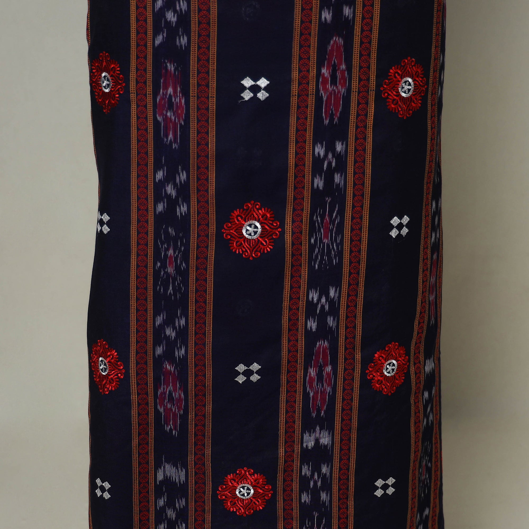 Sambalpuri Ikat is a combination of defined motifs, which are produced through precision and patience by the skilled professional artisans. Almost all of the designs are cotton-based which makes the color seep in deeper making any attire crafted with it which is suitable for all weathers.
