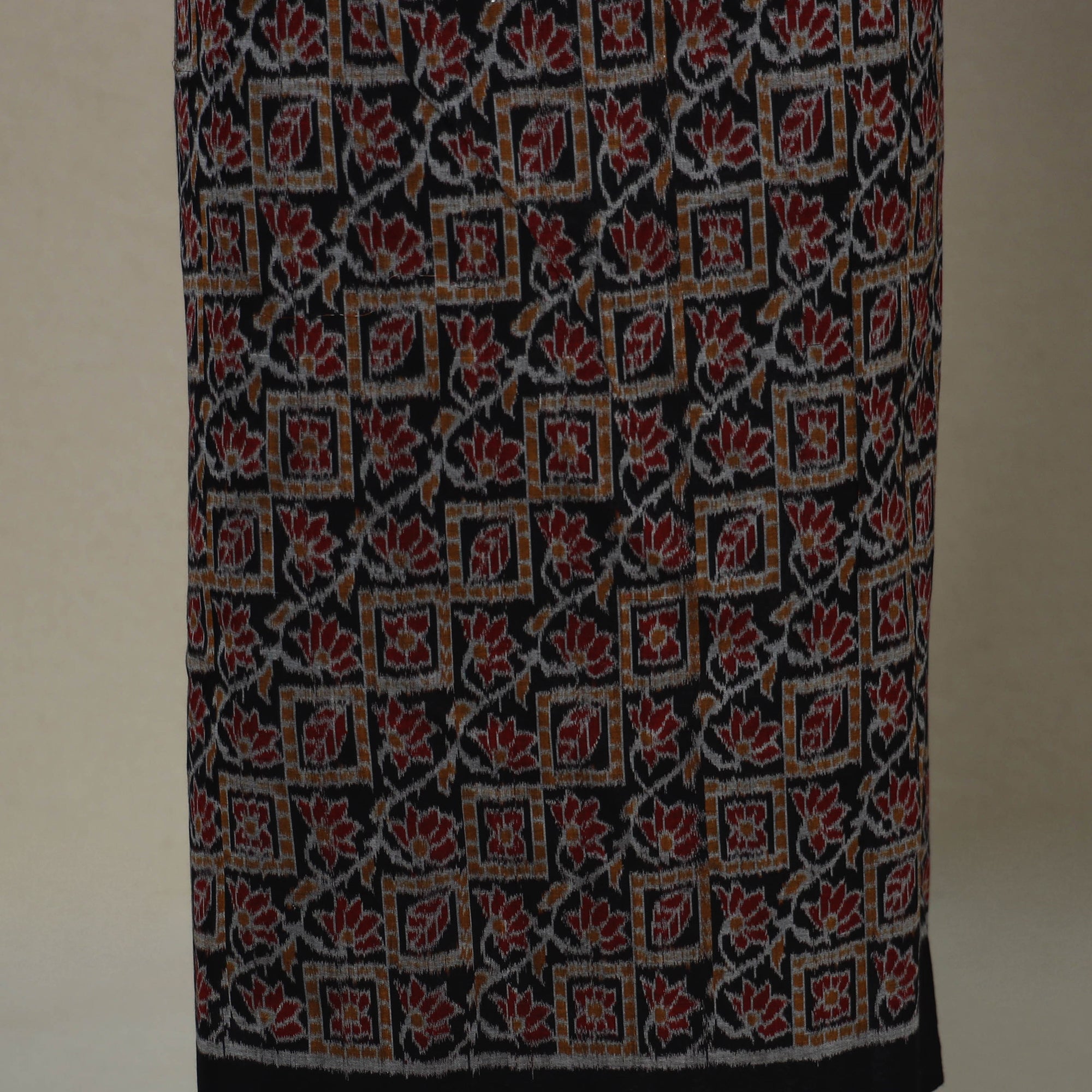 Experience the heritage of Odisha with our exquisite black sambalpuri Ikat weaving handloom cotton dress material set. This set includes a kurta, a dupatta with plain matching bottom, featuring traditional motifs like shankha (shell), chakra (wheel), and phula (flower) meticulously crafted by master artisans from the eastern states. Made from fine quality cotton, this dress material set is a perfect blend of comfort and style, showcasing the beauty of Ikat weaving.