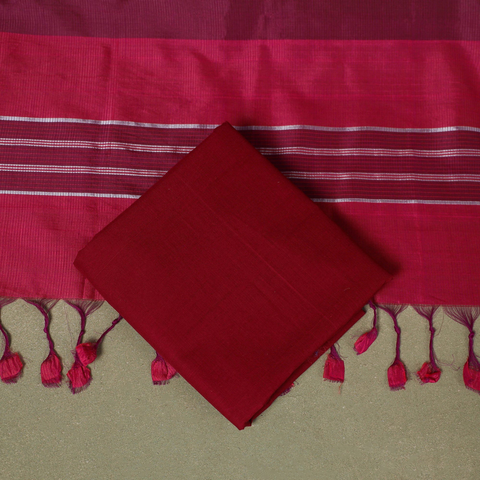 Maroon - Handloom Cotton Mangalagiri Fabric with Zari Border 26