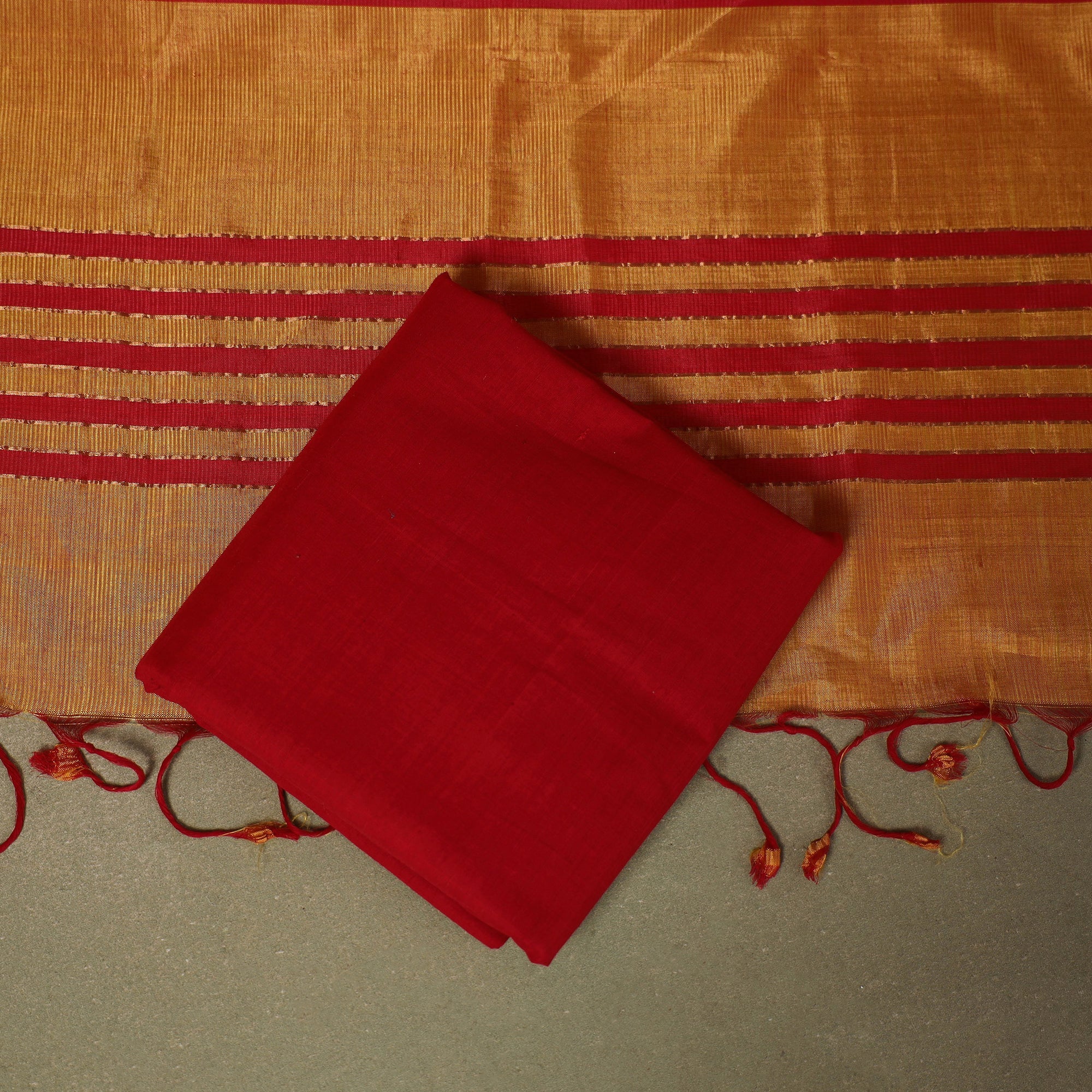 Maroon - Handloom Cotton Mangalagiri Fabric with Zari Border 26