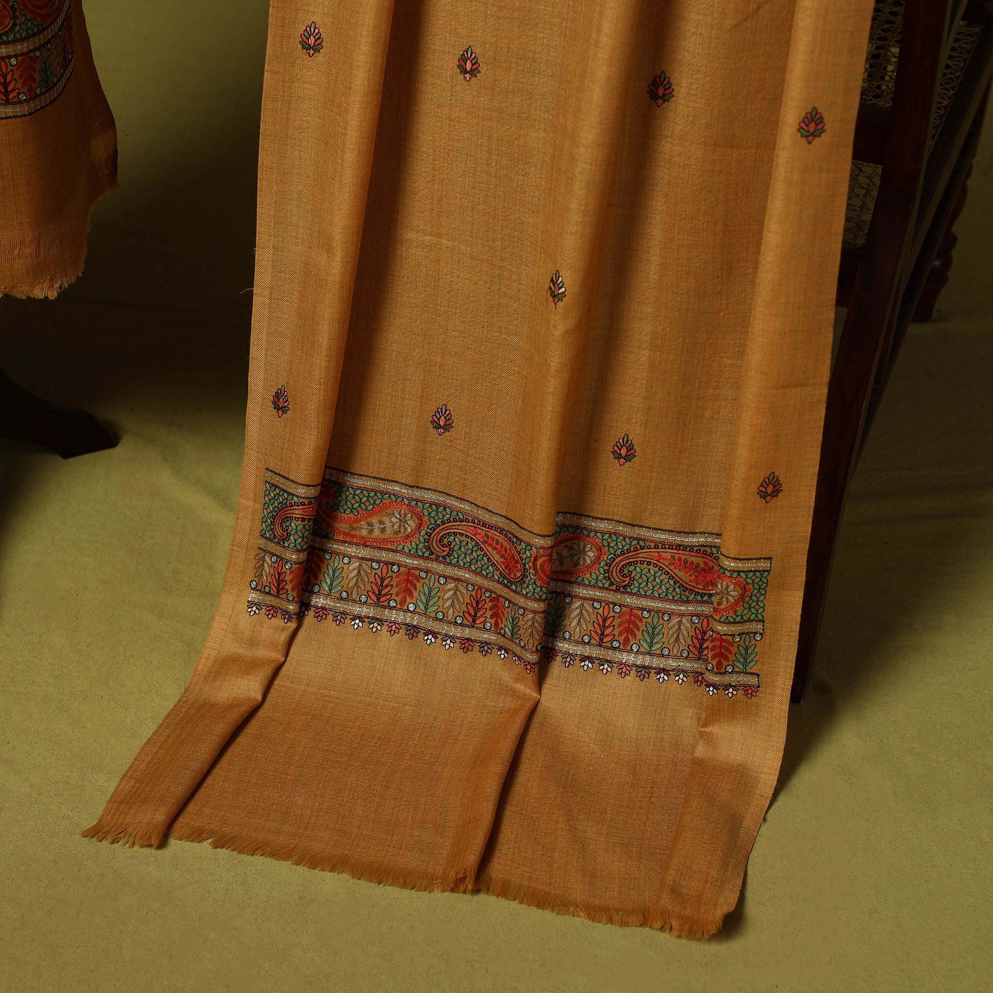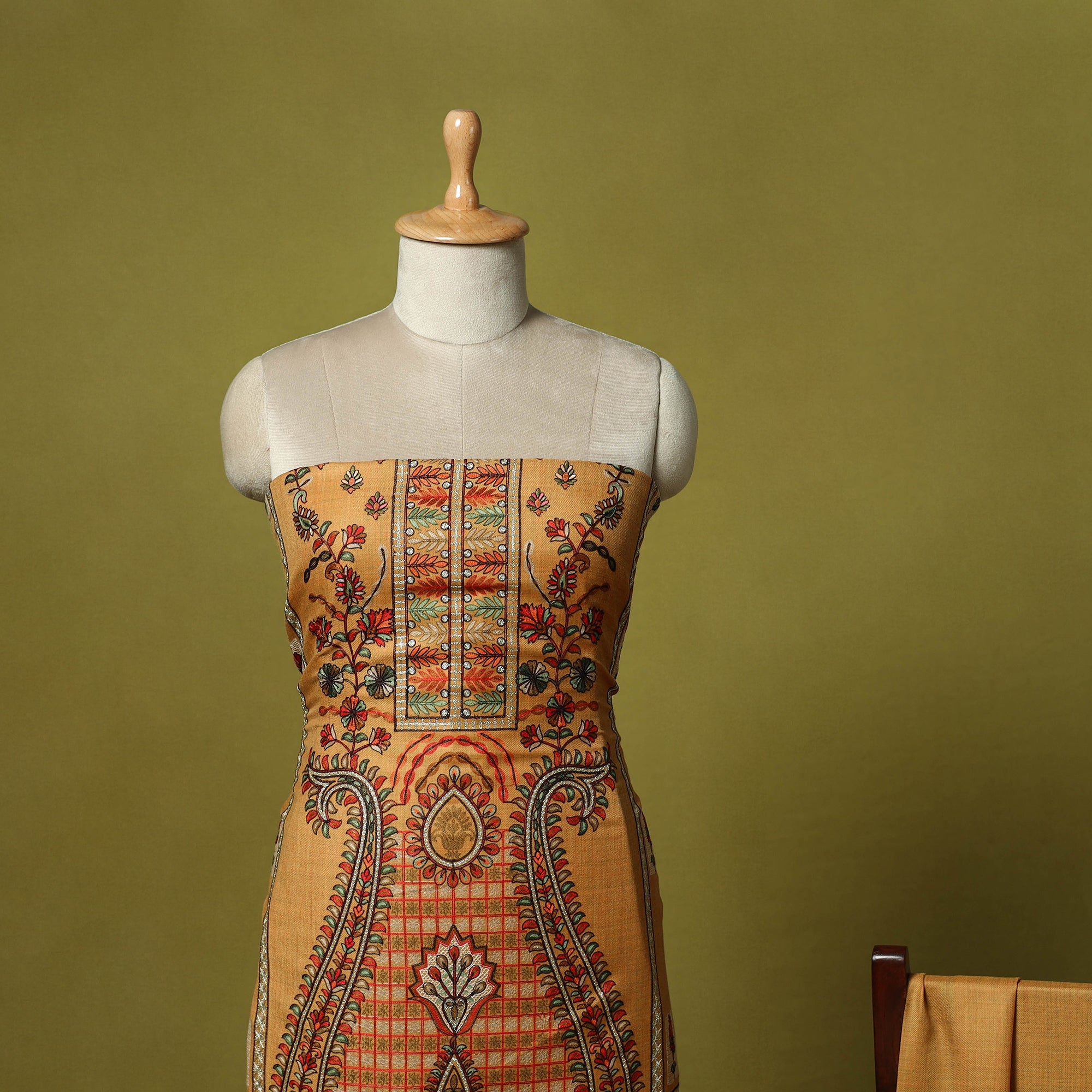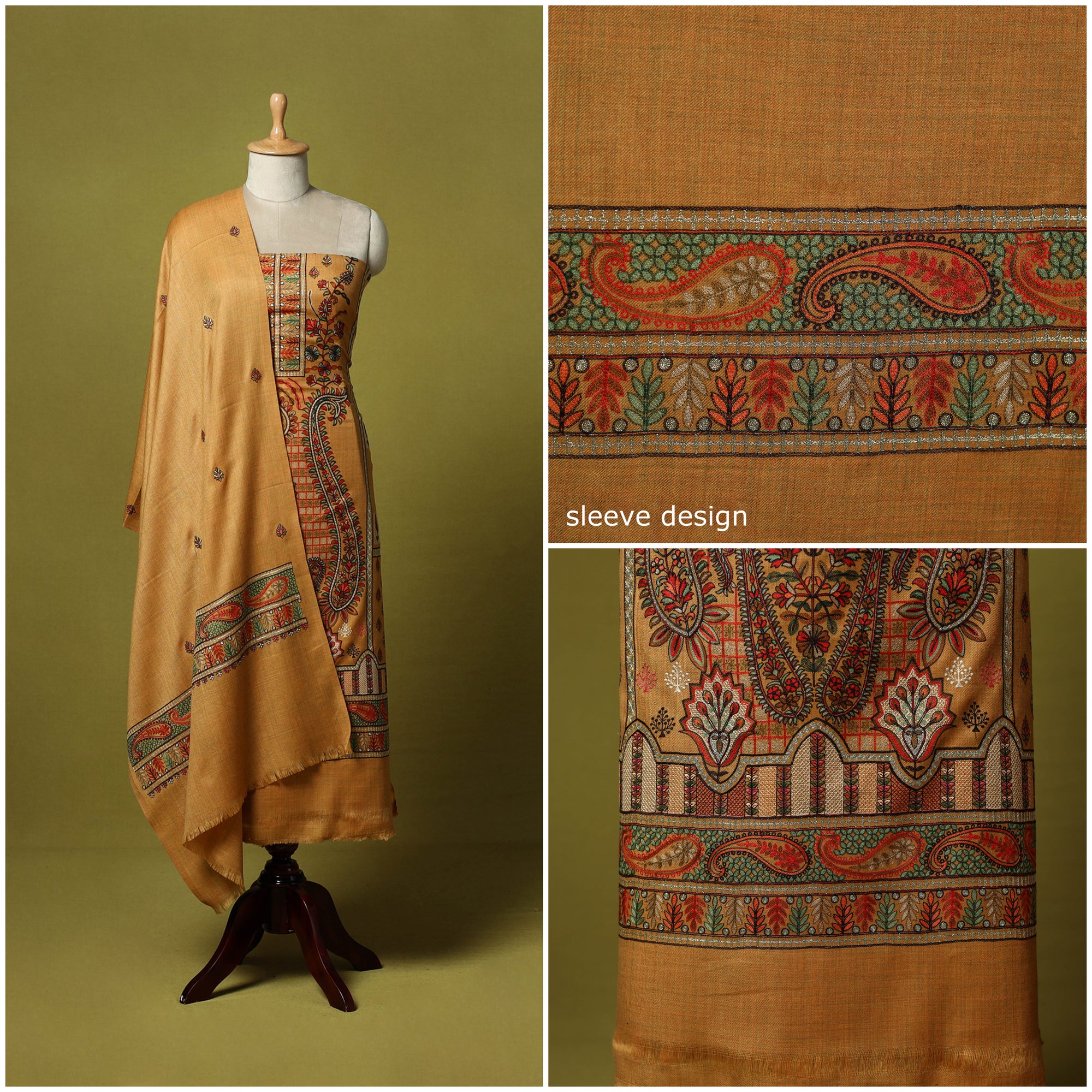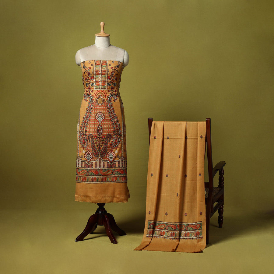 Brown 3pc heavy chain stitch embroidered merino wool unstitched dress material is perfect for elegant winter wear. Made from fine merino wool, it offers warmth, comfort and a rich texture. The set includes fabric for the top, bottom and dupatta is beautifully detailed with intricate embroidery. Ideal for stitching into stylish suits for casual or festive occasions, it’s a graceful and cozy choice for the winter season.