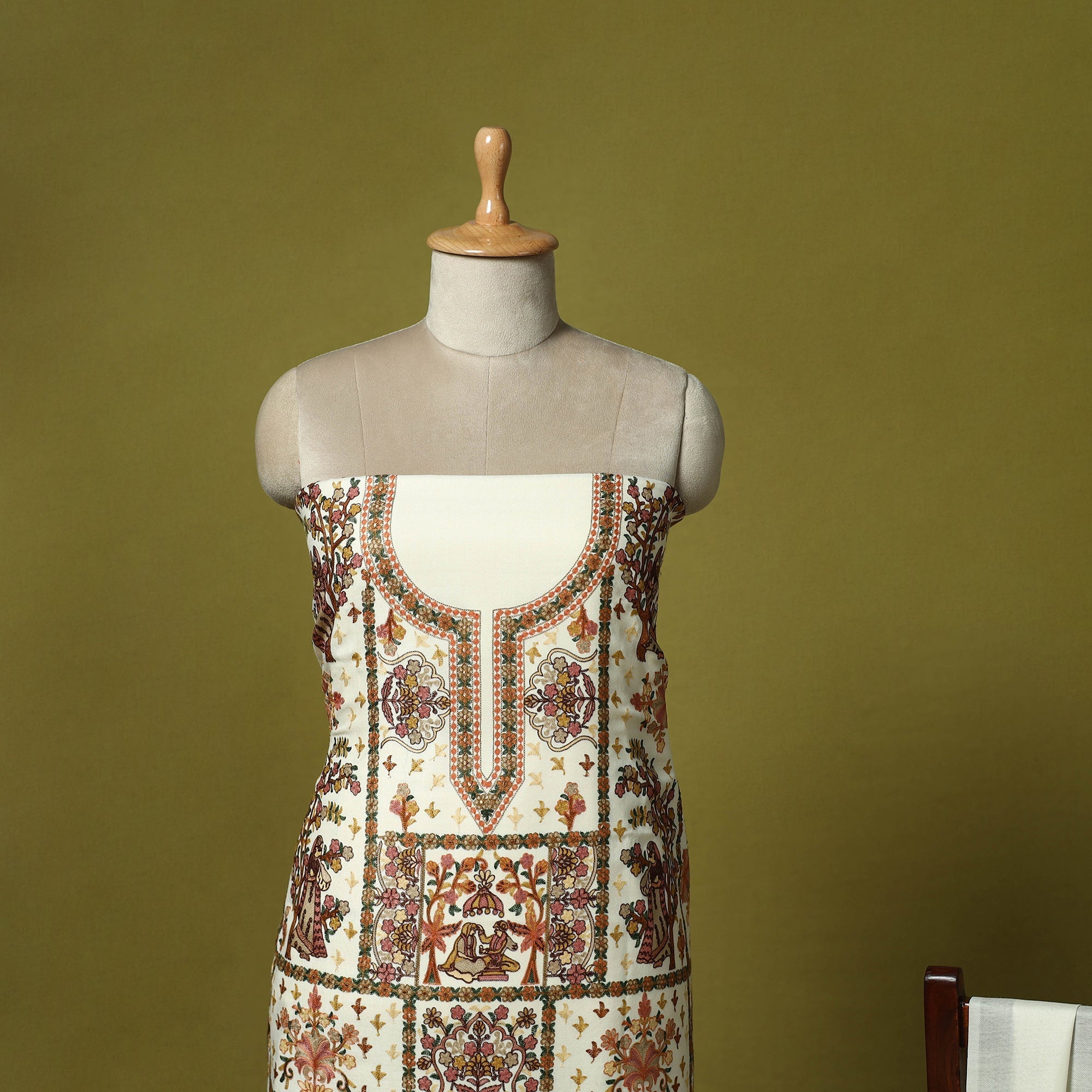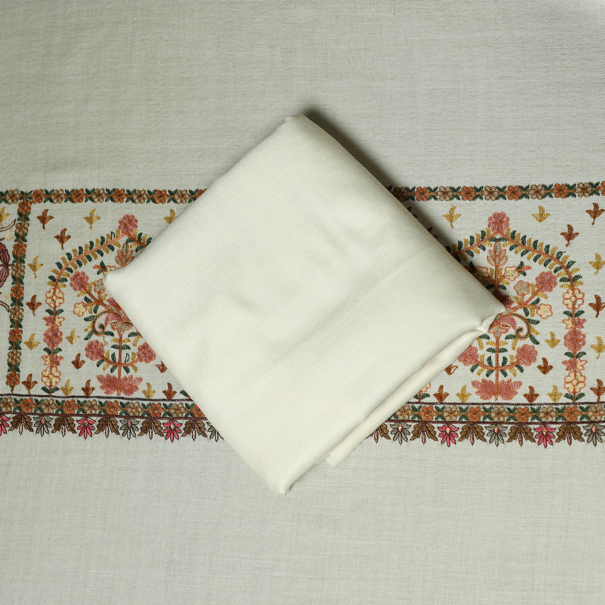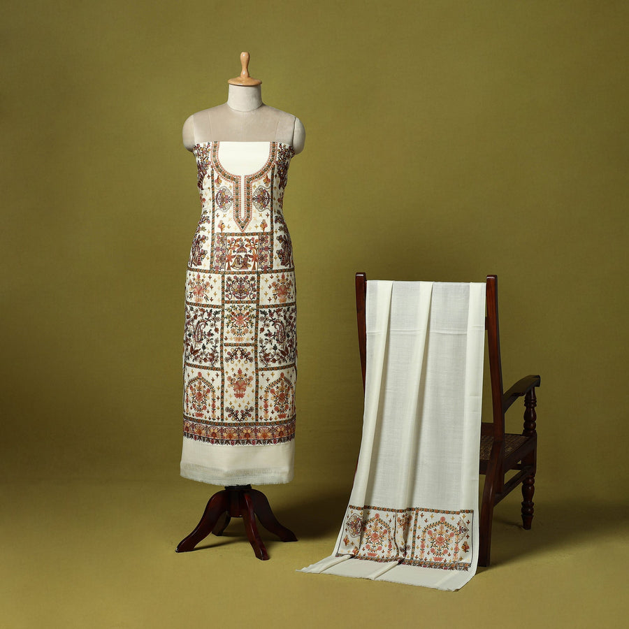 | Material | White 3pc heavy chain stitch embroidered merino wool unstitched dress material is perfect for elegant winter wear. Made from fine merino wool, it offers warmth, comfort and a rich texture. The set includes fabric for the top, bottom and dupatta is beautifully detailed with intricate embroidery. Ideal for stitching into stylish suits for casual or festive occasions, it’s a graceful and cozy choice for the winter season. |