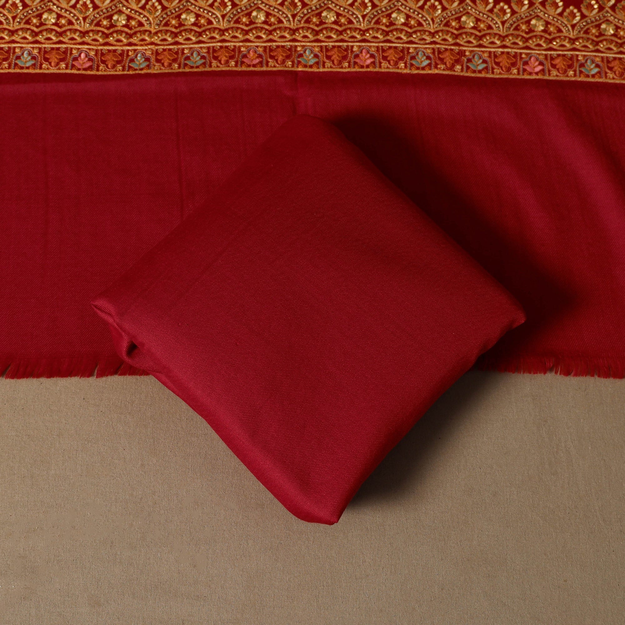 This red 3pc heavy embroidered merino wool unstitched dress material is perfect for elegant winter wear. Made from fine merino wool, it offers warmth, comfort, and a rich texture. The set includes fabric for the top, bottom, and dupatta, featuring beautiful embroidery. Ideal for stitching into stylish suits for casual or festive occasions a perfect choice for graceful and cozy winter outfits.