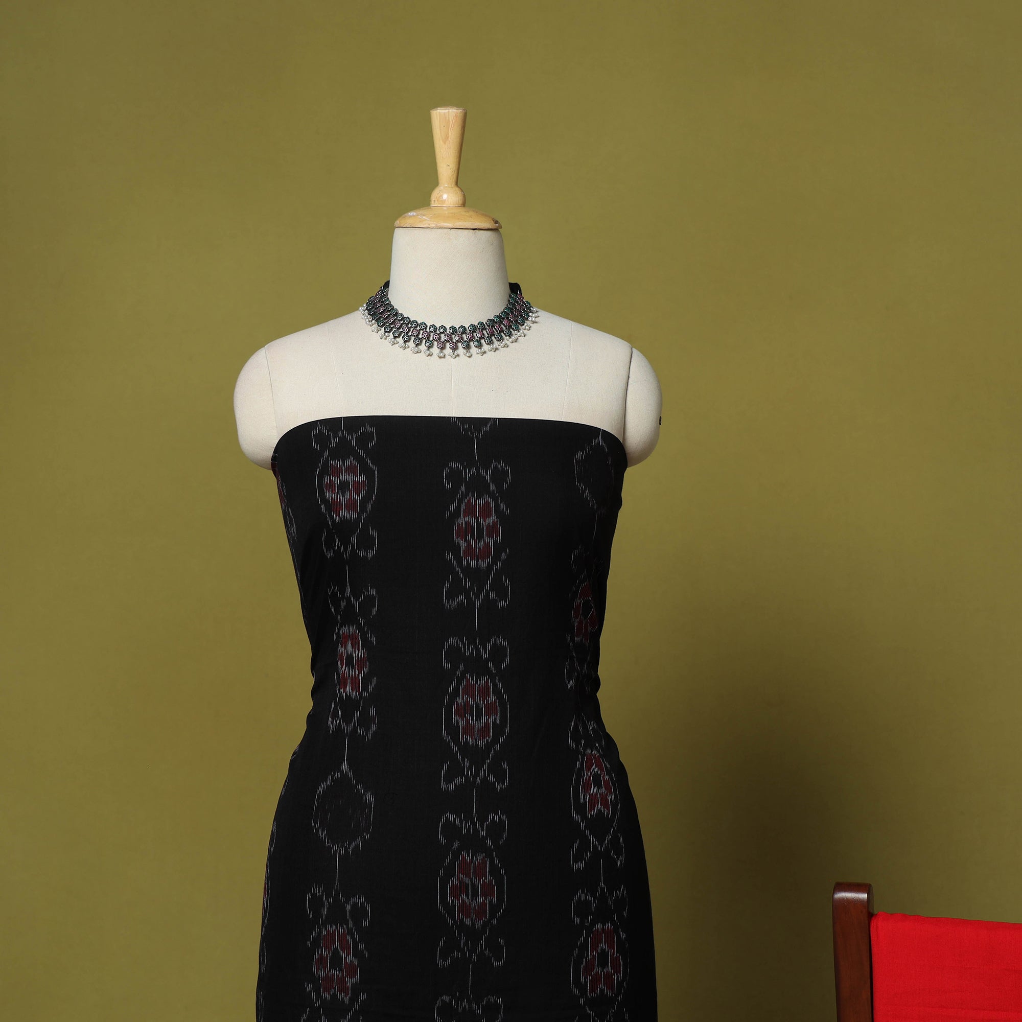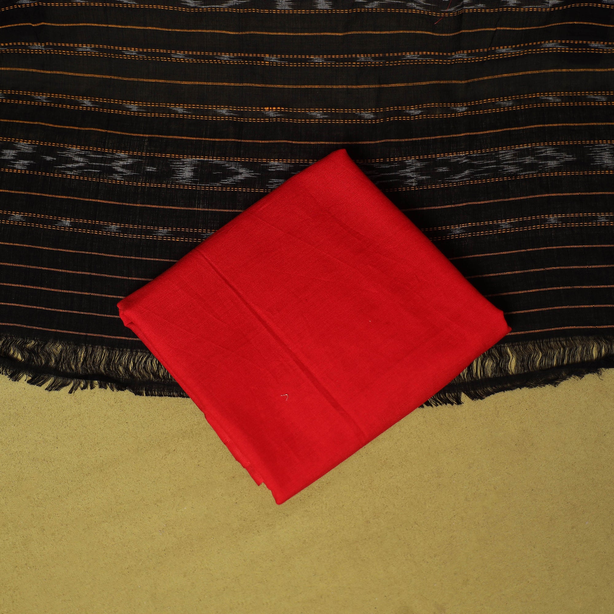 Black - Sambalpuri Ikat Handloom Cotton 3pc Unstitched Dress Material 16