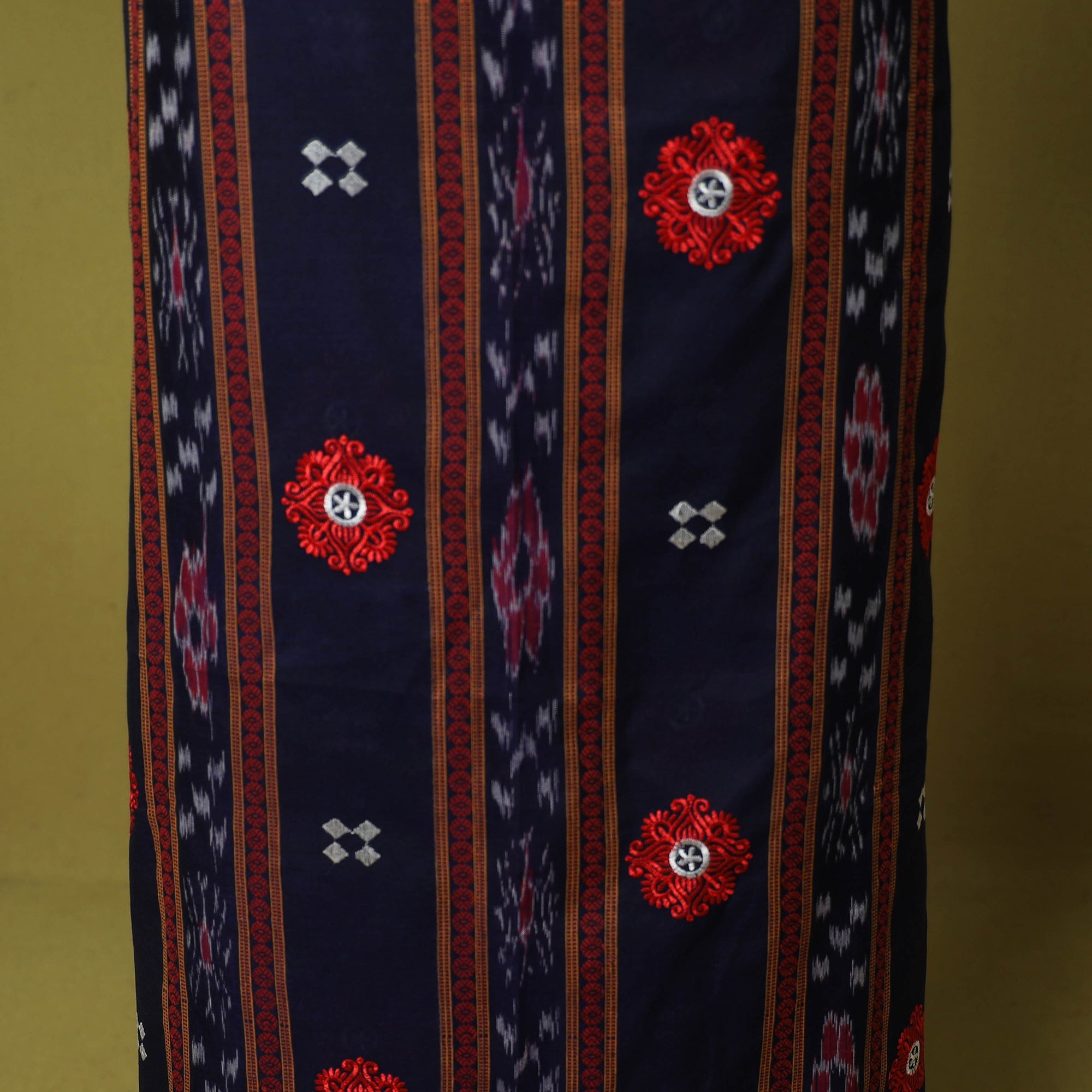 This blue handloom sambalpuri 3pc dress material is woven by skilled artisans of Odisha using the traditional ikat technique. The set features iconic motifs such as shankha, chakra, and phula, which reflect the rich heritage of sambalpuri weaving. It includes fabric for a kurta, a plain bottom, and a dupatta. Known for its vibrant hues, intricate detailing, and durable finish, this dress material is an ideal choice for festive occasions, weddings, or to add a touch of elegance to your everyday style.