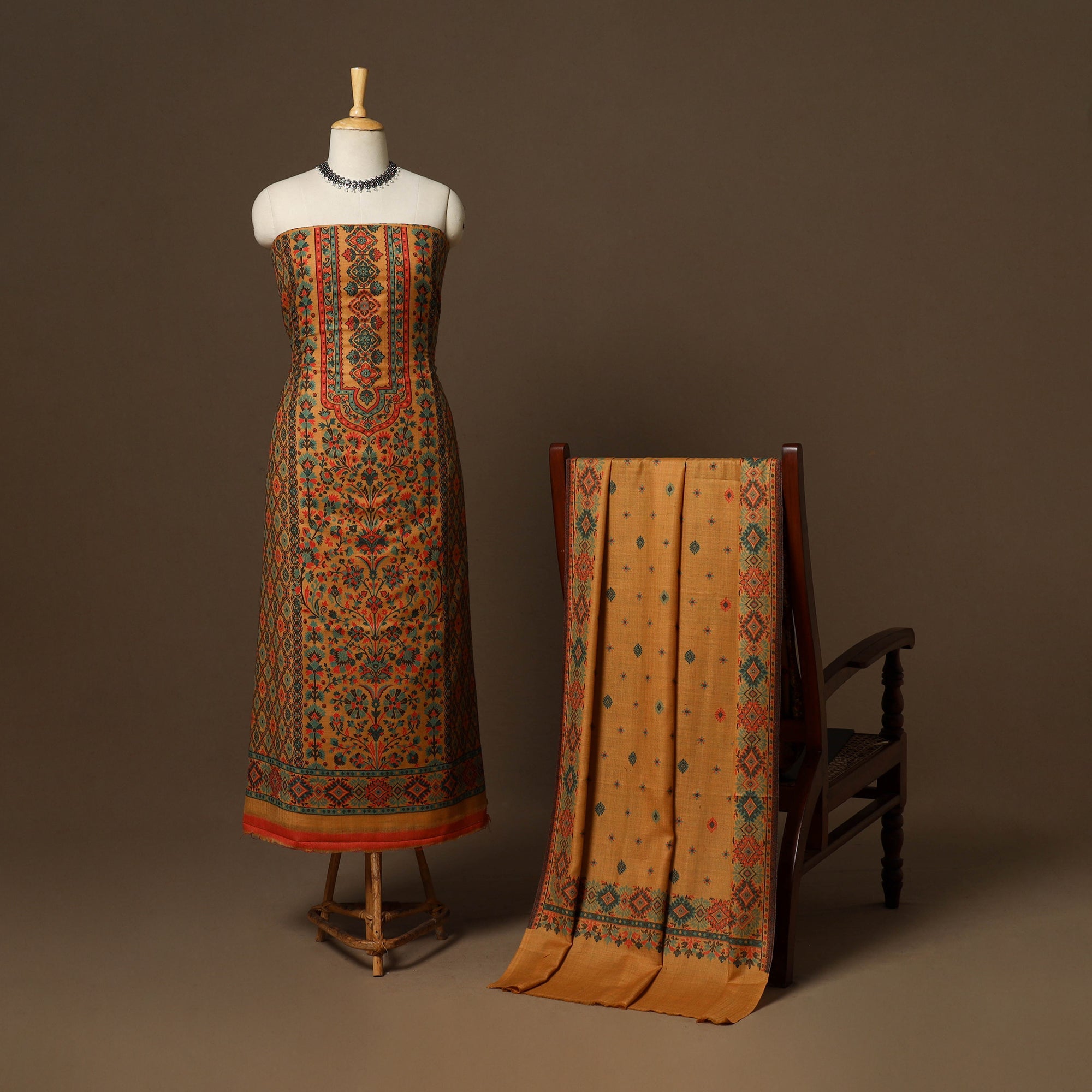 This yellow 3pc jacquard weave merino wool unstitched dress material is ideal for elegant winter wear. Crafted from fine merino wool, it provides warmth, comfort, and a luxurious texture. The set includes fabric for the top, bottom, and dupatta, featuring beautiful jacquard weave patterns. Perfect for stitching into stylish suits for casual or festive occasions, it’s a graceful and cozy choice for the winter season.