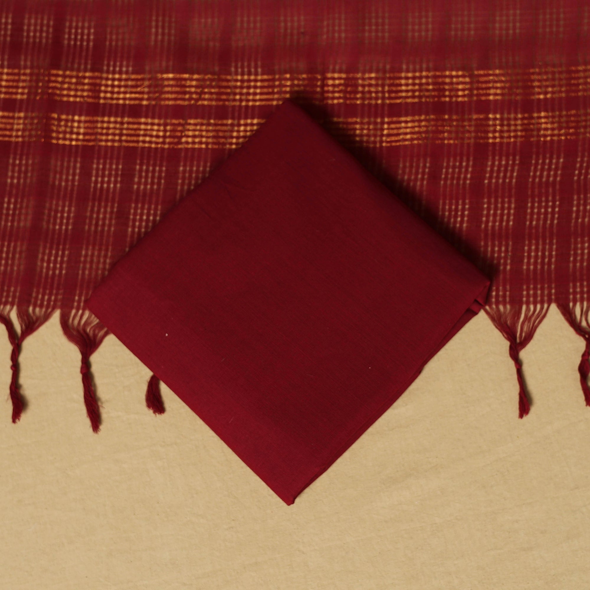 Elevate your ethnic look with this vibrant blue khun dress material, woven by skilled weavers of Karnataka. This 3-piece cotton set includes a lustrous khun kurta fabric, a dupatta featuring a missing check pattern with a zari border, and a plain bottom. Celebrated for its bold colours and rich texture, Khun fabric is a distinctive choice for both festive occasions and everyday wear.