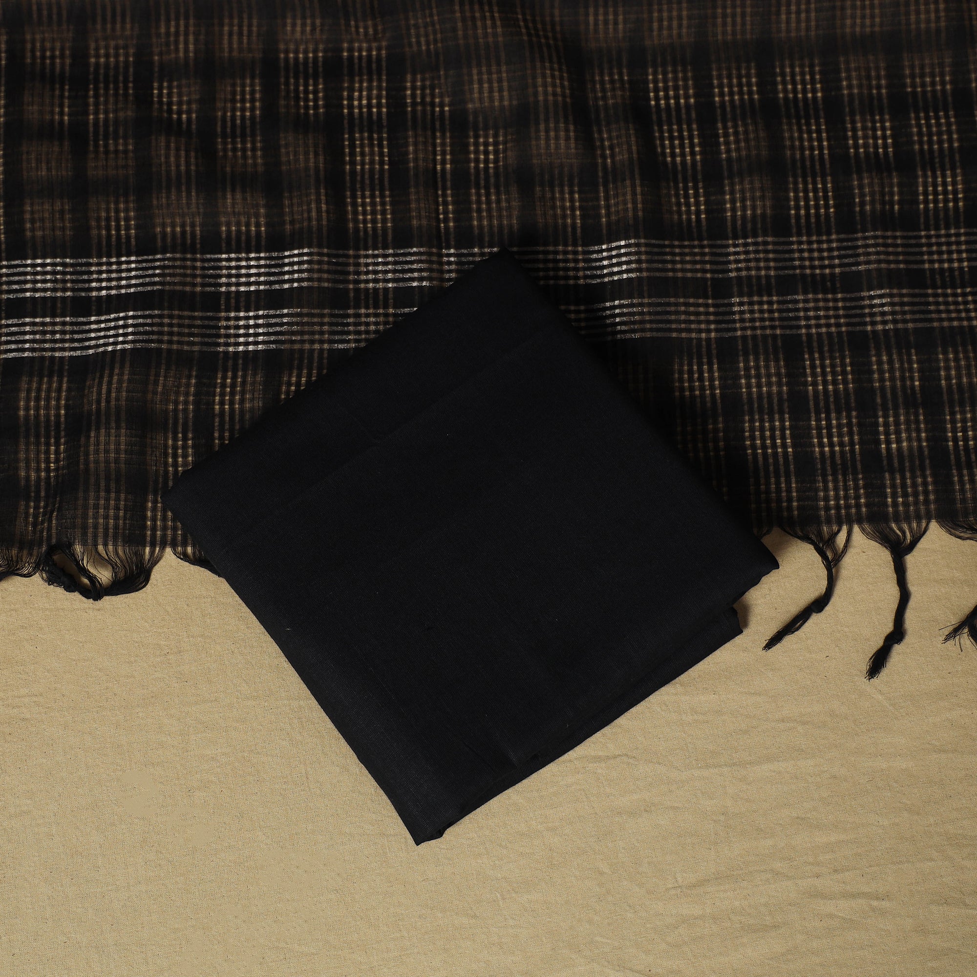 Elevate your ethnic look with this vibrant green khun dress material, woven by skilled weavers from Karnataka. This 3pc cotton set includes a shiny khun kurta fabric, a cotton dupatta with a missing checks pattern and zari border, and a plain cotton bottom. Known for its bold colours and rich texture, khun fabric is a unique choice for both special outings and everyday wear.