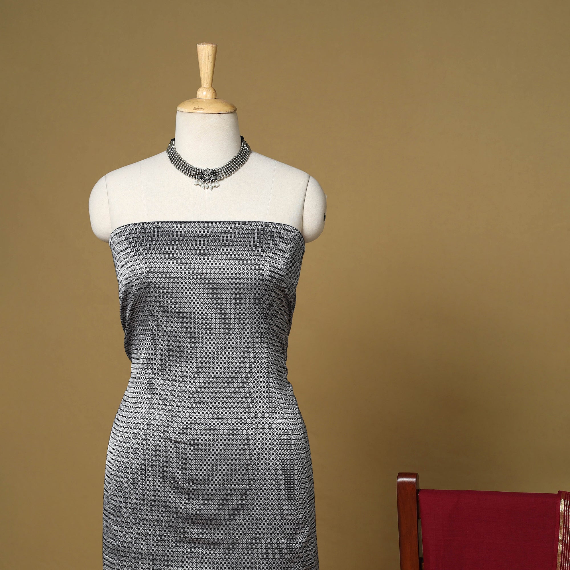 • Grey - 3pc karnataka weave cotton unstitched khun dress