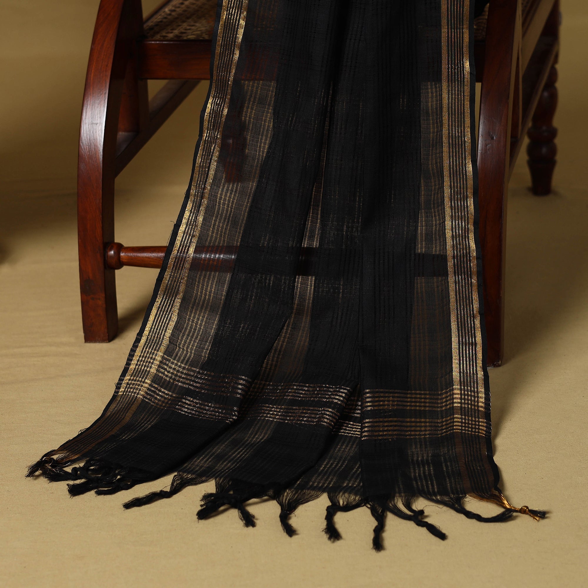 Khun is woven exclusively on a loom in Guledagudd, Bagalkot region, Karnataka. Used only for sari blouses, this handmade fabric is easily recognizable by its small white intricate motif and distinctive reddish-purple border.