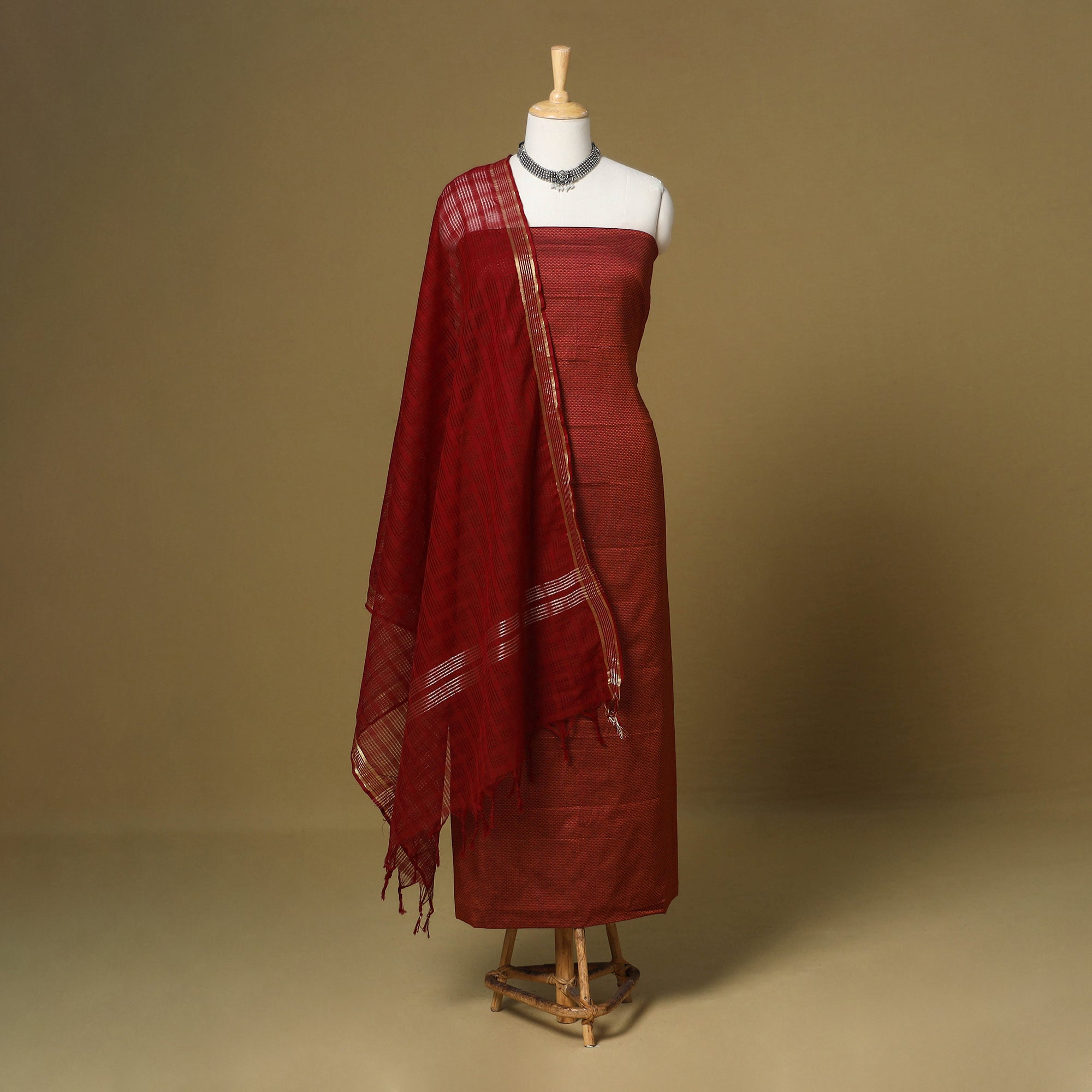• Red - 3pc karnataka weave cotton unstitched khun dress
