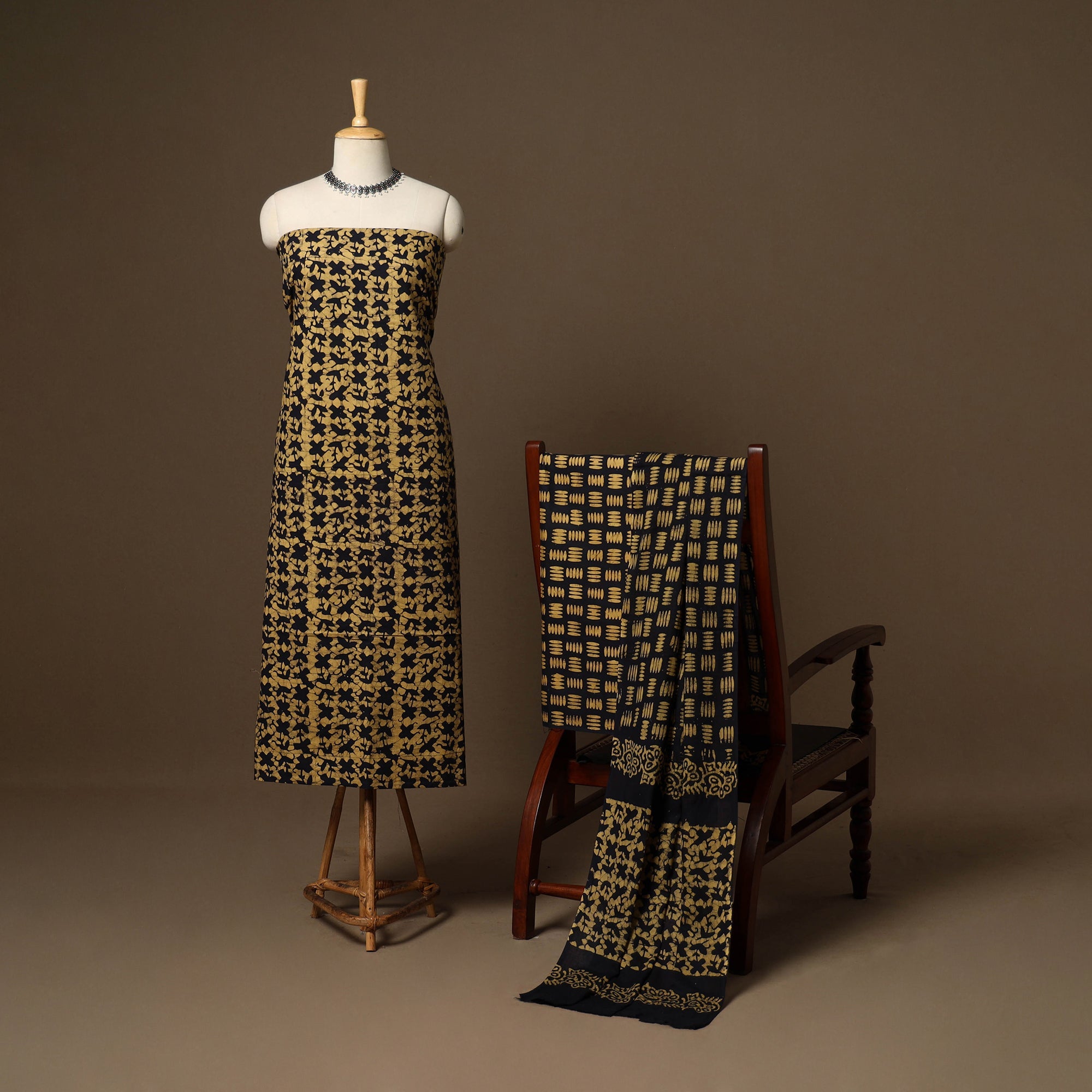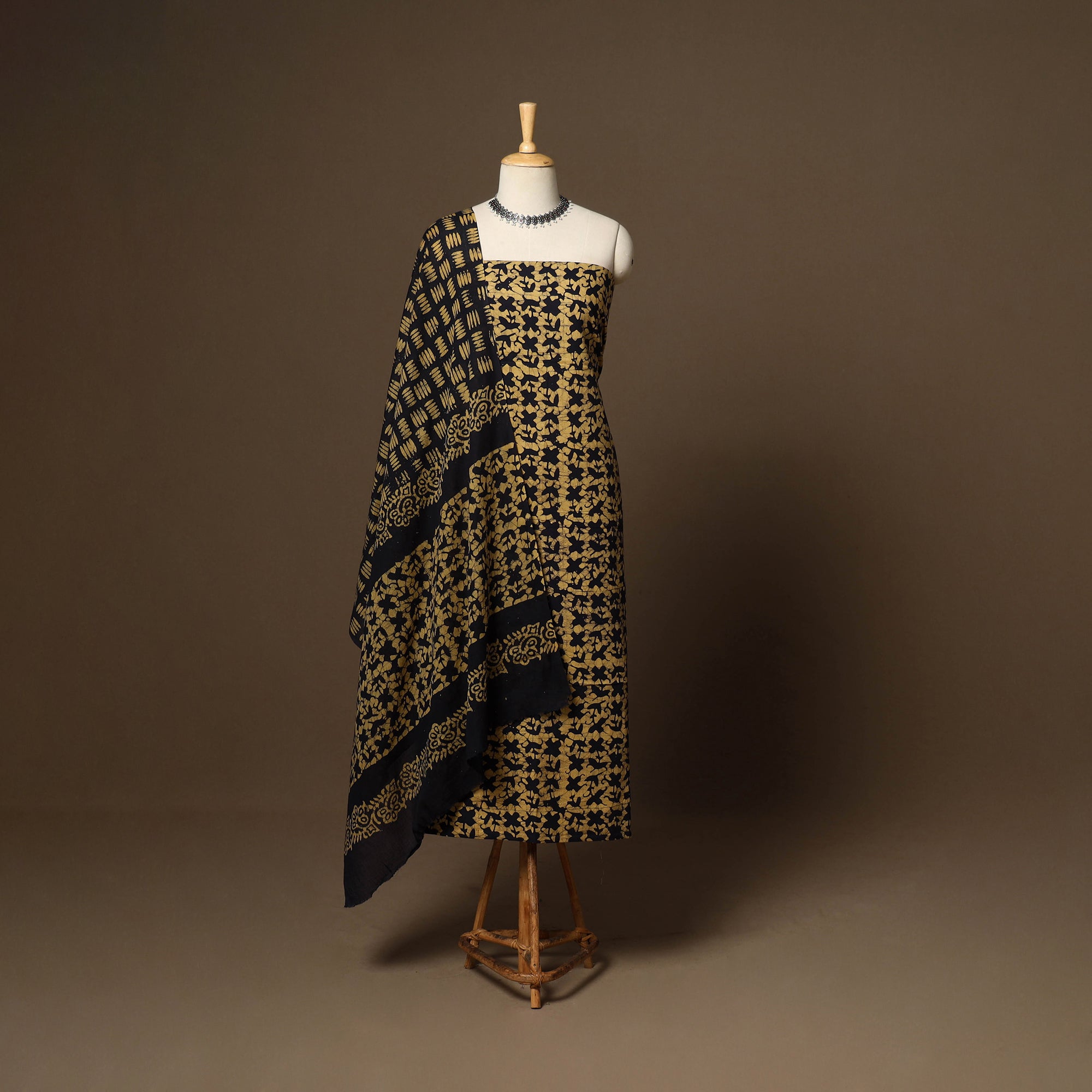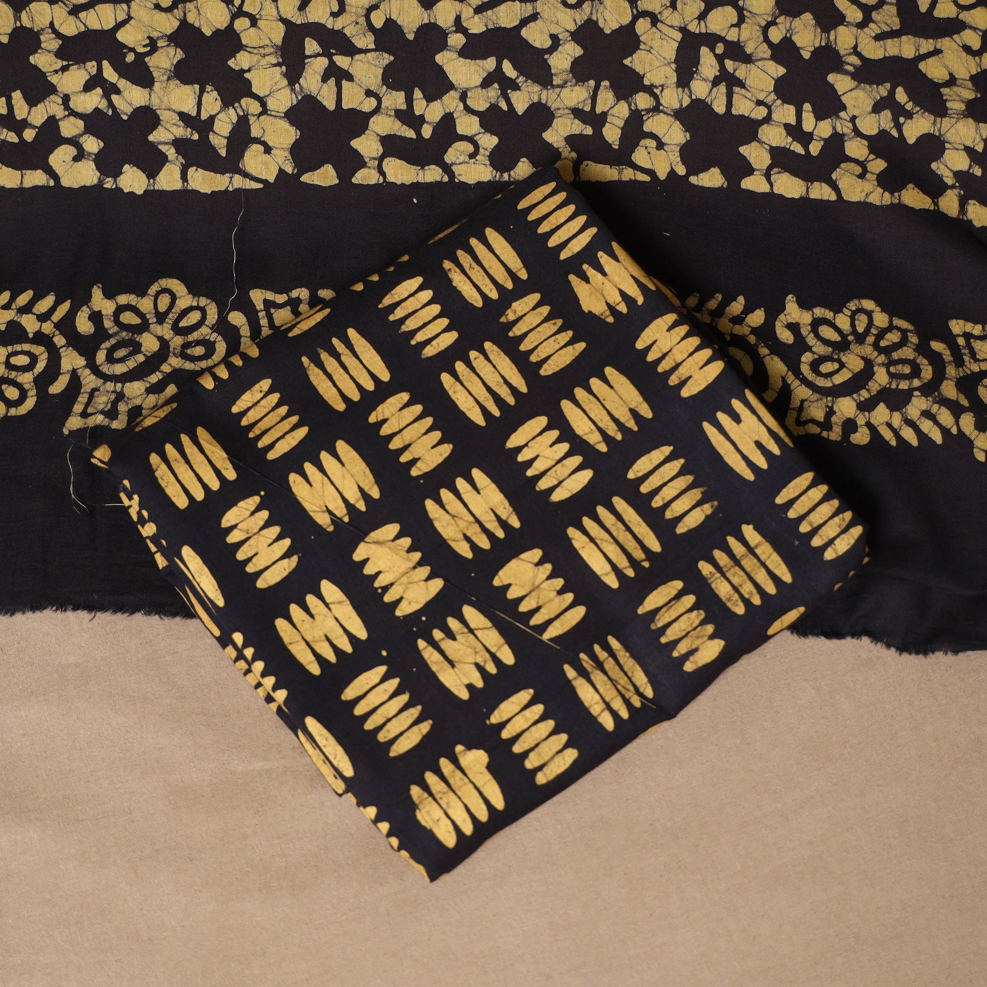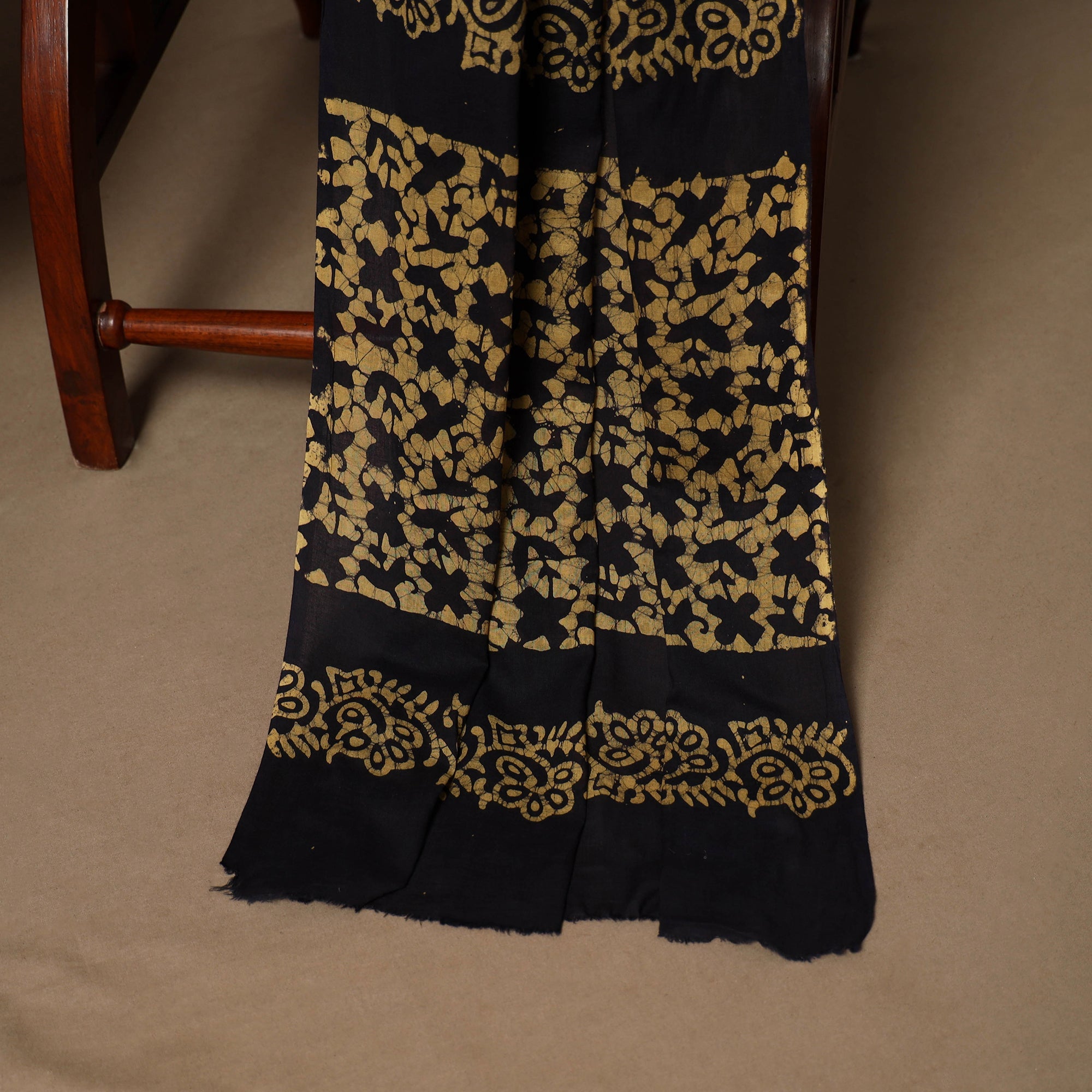Batik is a very famous technique of wax-resist dyeing applied to whole cloth. The traditional designs and motifs in Indian batik are exceptional. It is a type of resist printing process wherein wax is applied to the fabric in specific areas.