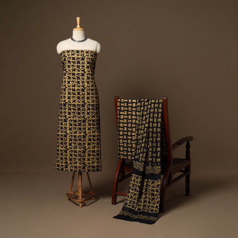 Step into the world of timeless craftsmanship with this 3pc green kutch batik print cotton dress material. Crafted using traditional wax-resist dyeing, each fabric tells a story of cultural heritage. Known for its comfort and durability, this eco friendly material is perfect for elegant suits.