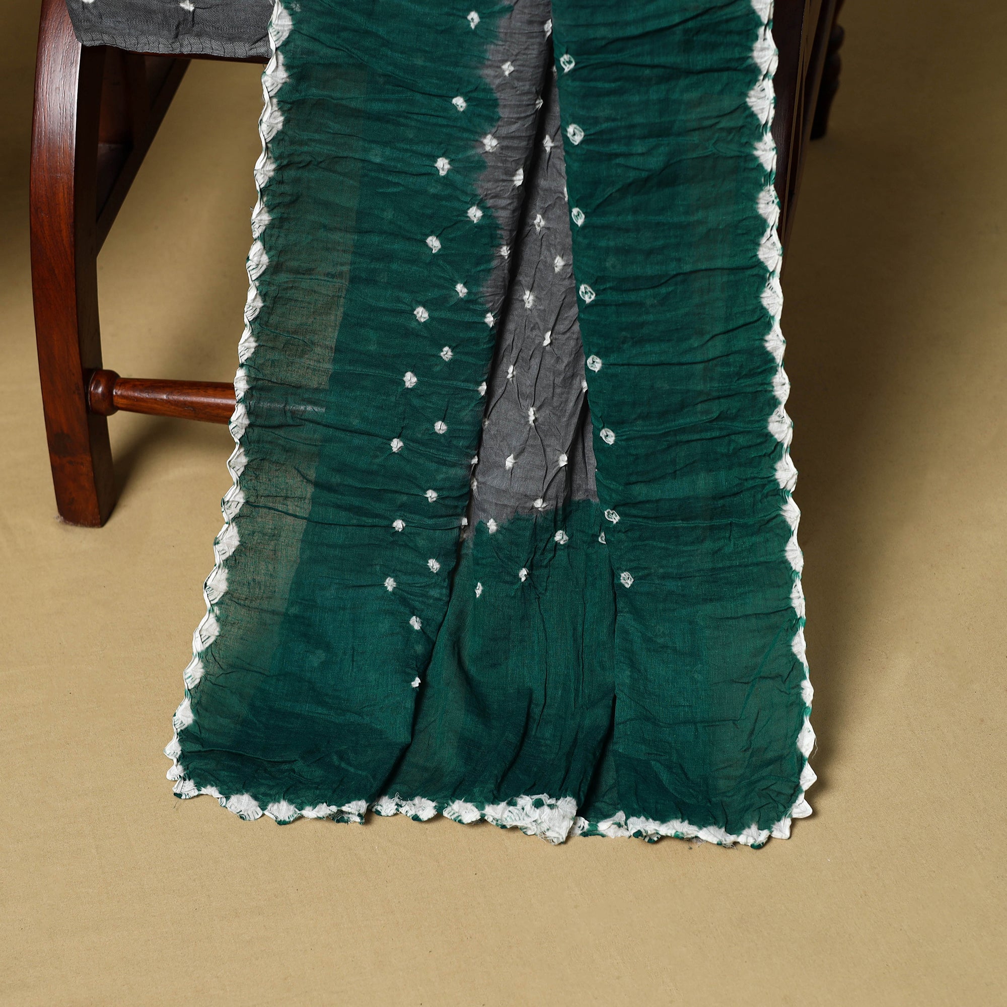 • Green - 3pc Kutch Tie-Dye Satin Cotton Unstitched Bandhani Dress Material 10