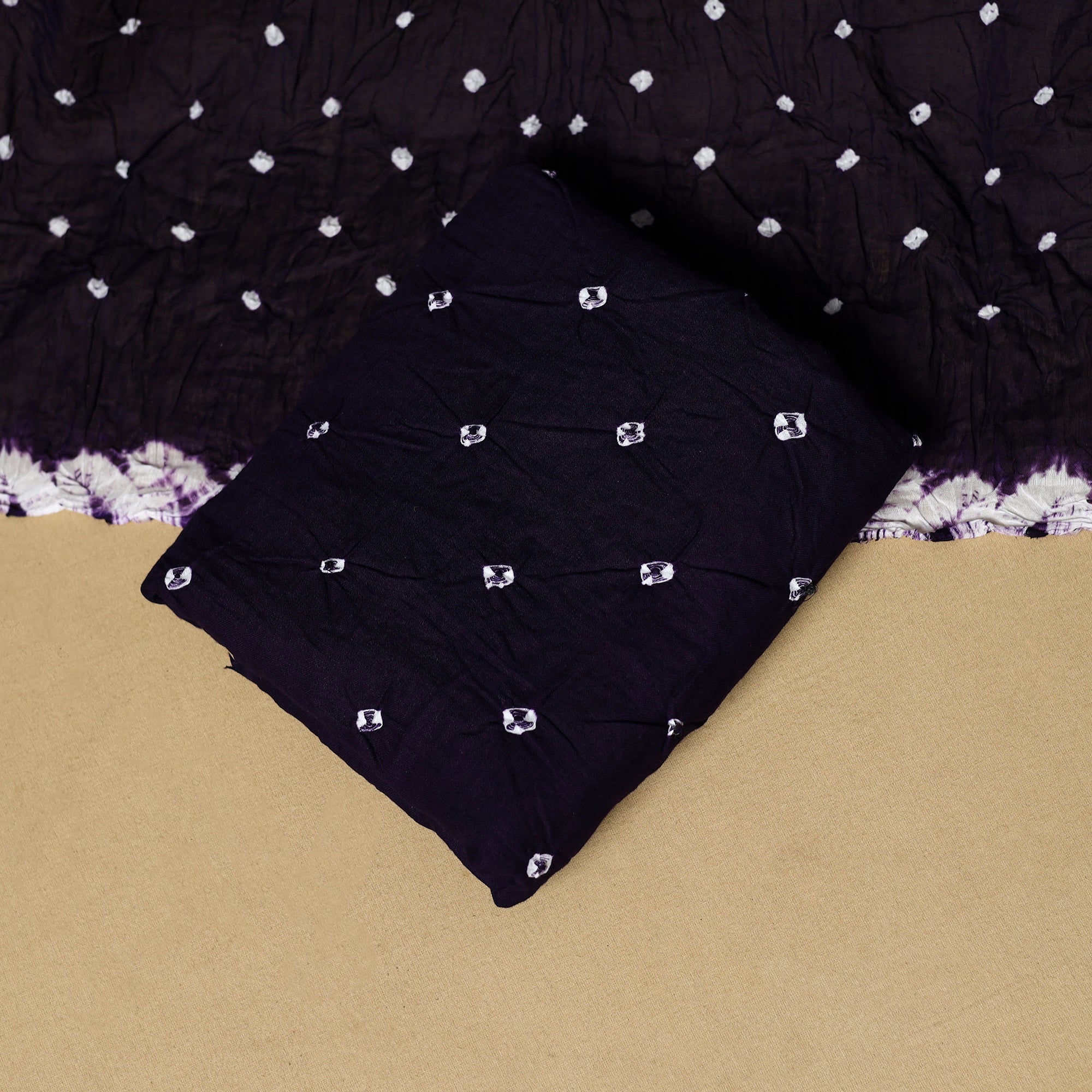Blue 3pc satin cotton bandhani dress material is crafted by artisan Shabana Khatri from Kutch. Made using the traditional tie & dye technique, each fabric piece shows beautiful bandhani patterns. The set includes fabric for a kurta, bottom and dupatta, giving you the freedom to design your own outfit. Ideal for festive occasions or everyday wear, it adds a vibrant and traditional touch to your wardrobe.