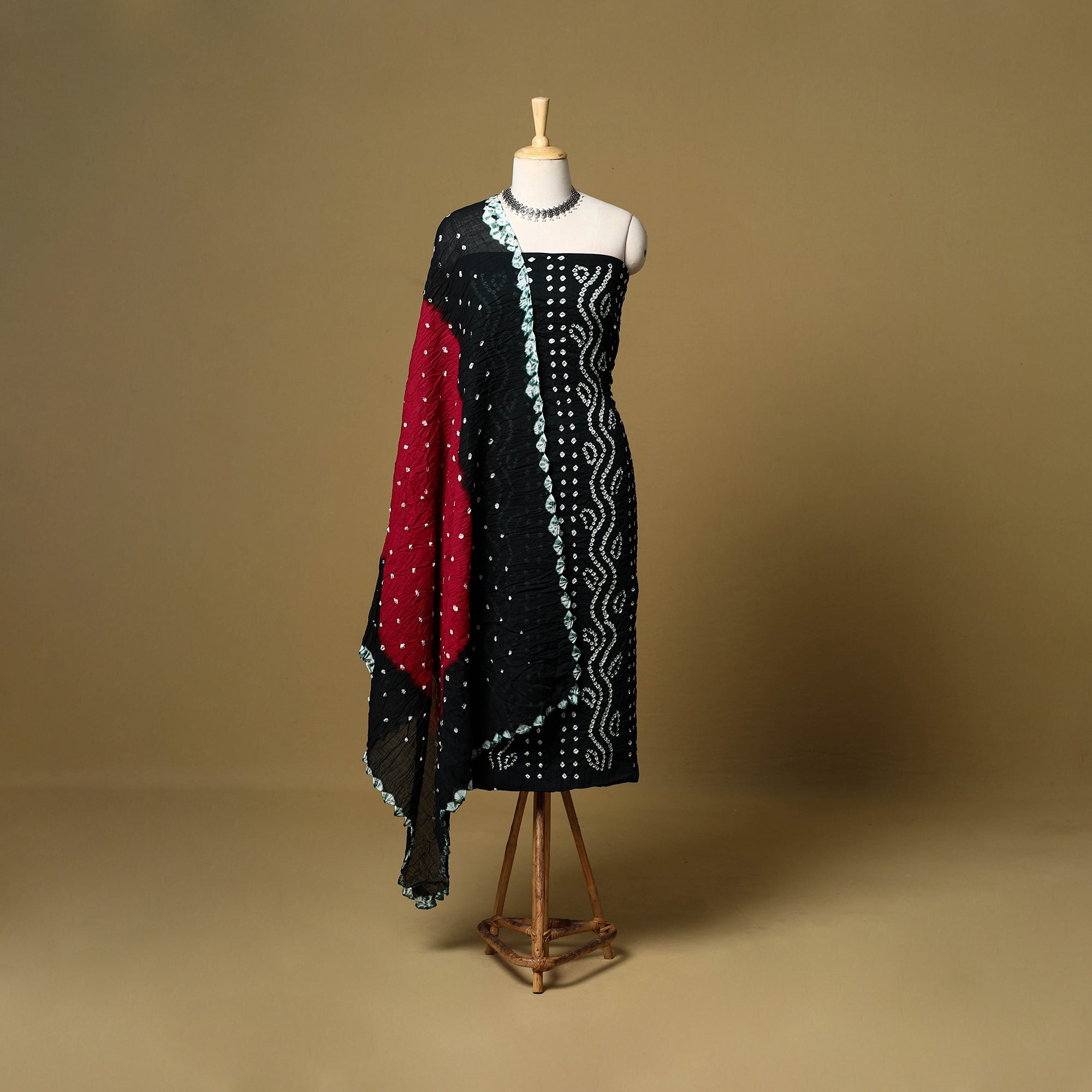 • 3pc kutch tie-dye satin cotton unstitched bandhani dress