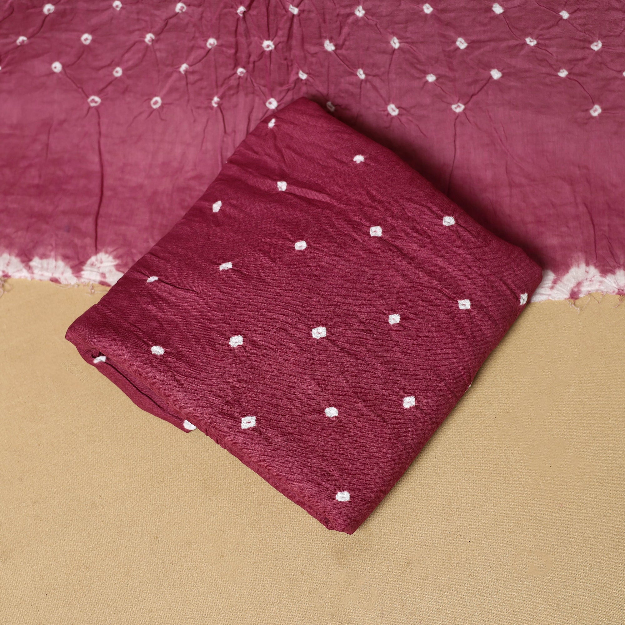 • Pink - 3pc Kutch Tie-Dye Satin Cotton Unstitched Bandhani Dress Material 135