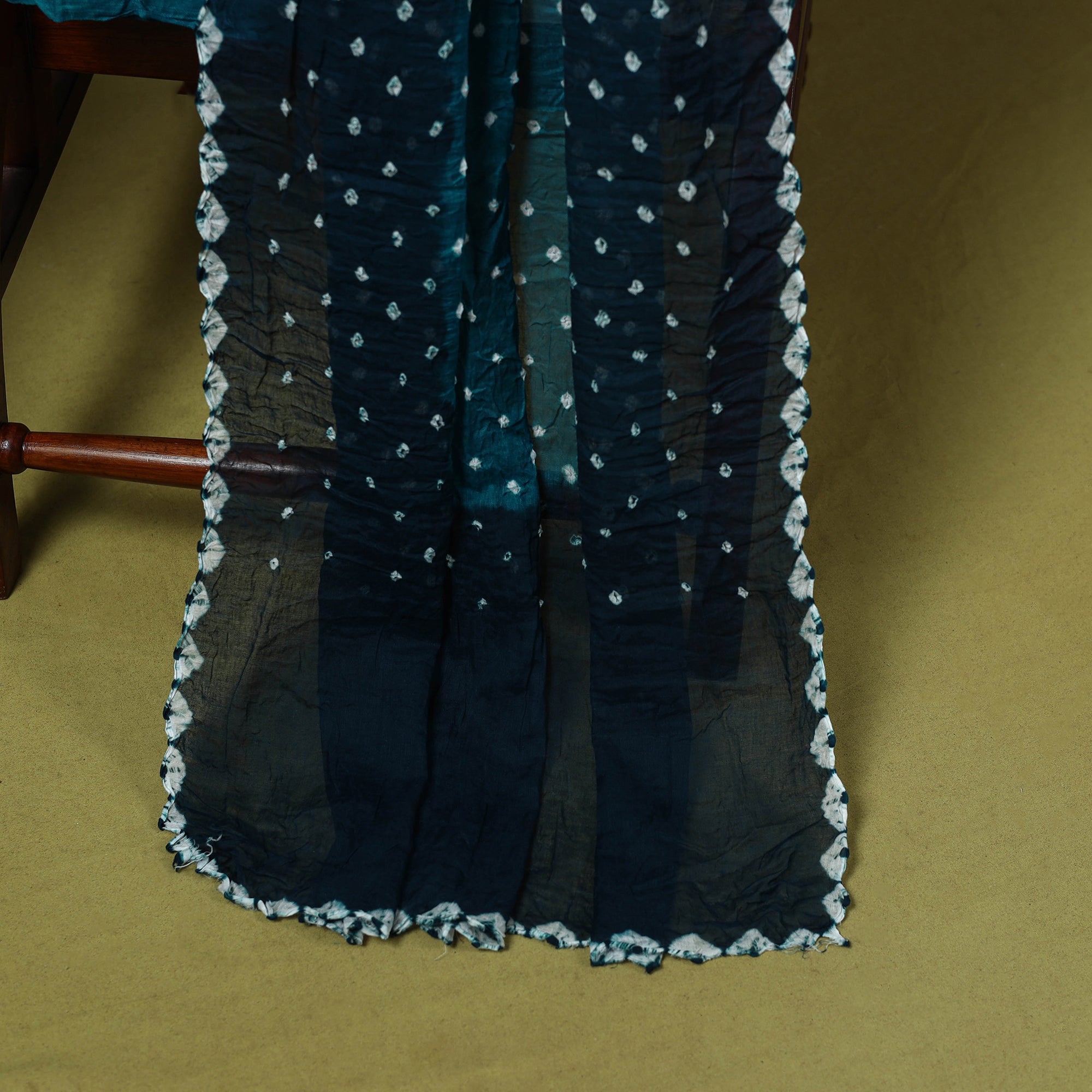 • 3pc Kutch Tie-Dye Satin Cotton Unstitched Bandhani Dress Material 143