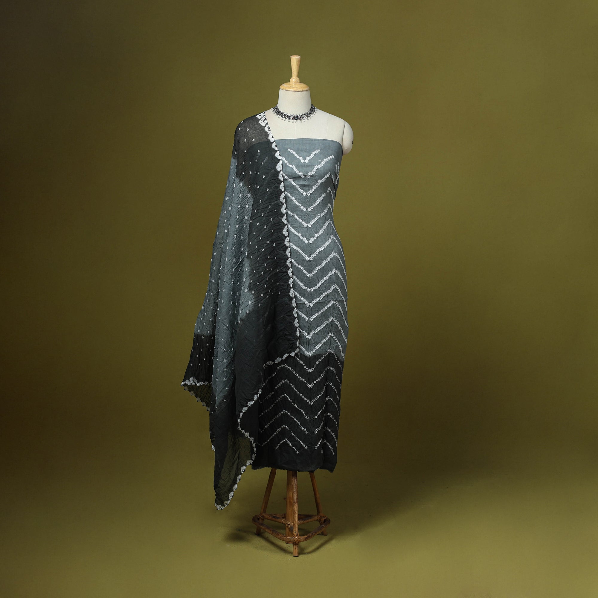 • 3pc kutch tie-dye satin cotton unstitched bandhani dress