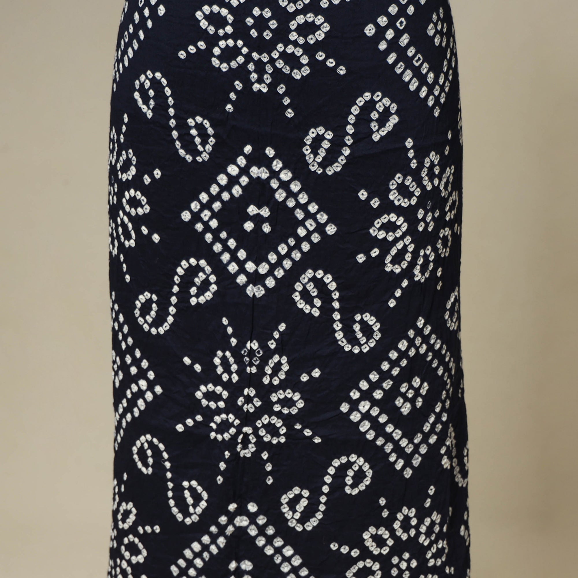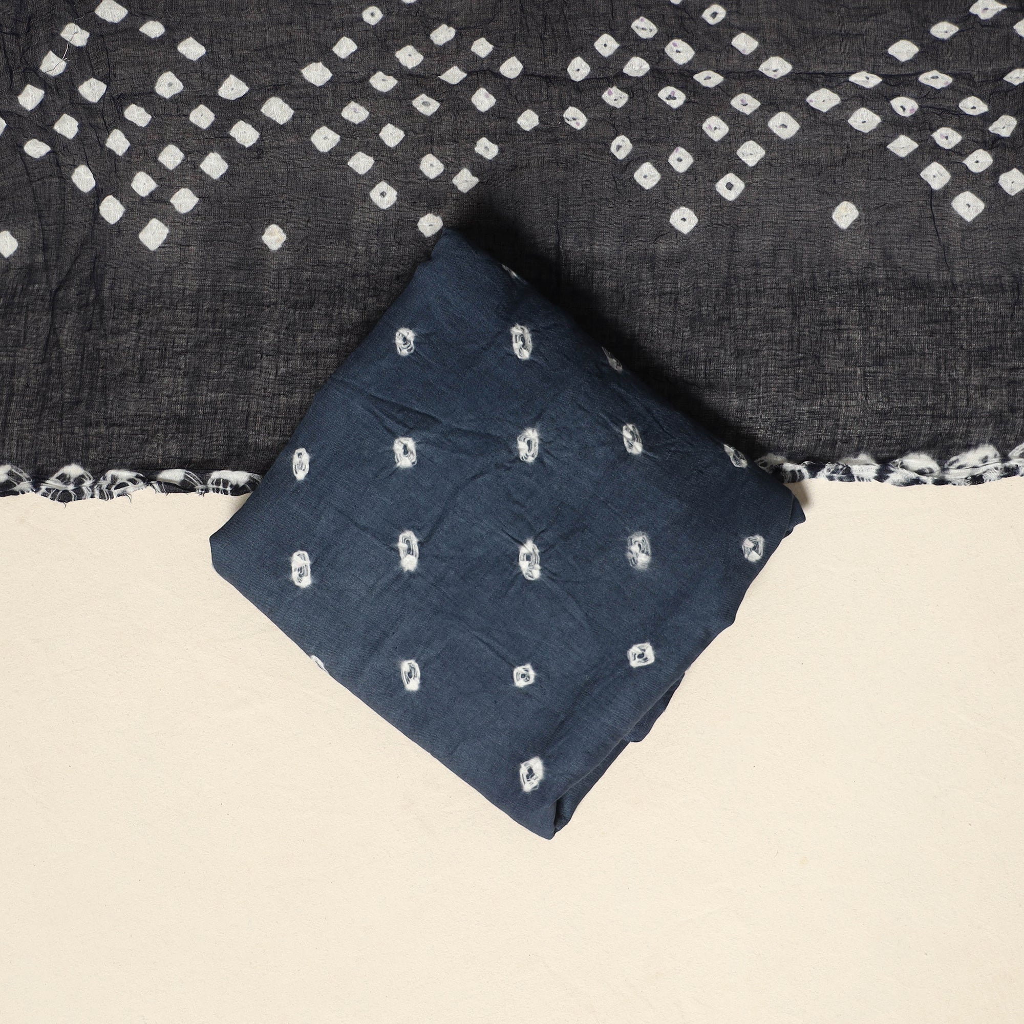 Add a touch of charm to your wardrobe with this blue 3pc satin cotton bandhani dress material by artisan Shabana Khatri from Kutch. Crafted using traditional tie-and-dye techniques, each section of the fabric is meticulously tied and dyed to form stunning, detailed patterns. The set includes fabric for a kurta, matching bottom, and dupatta, deal for festive wear, everyday comfort, or designing a style that’s uniquely yours.