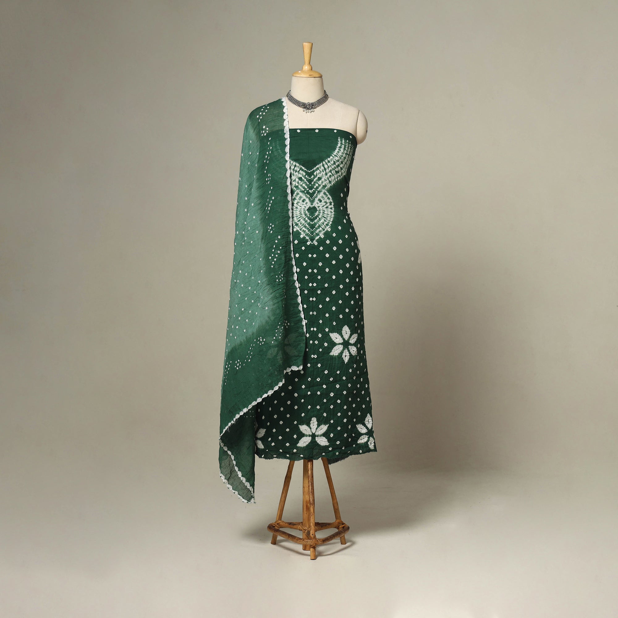 • Green - 3pc kutch tie-dye satin cotton unstitched bandhani