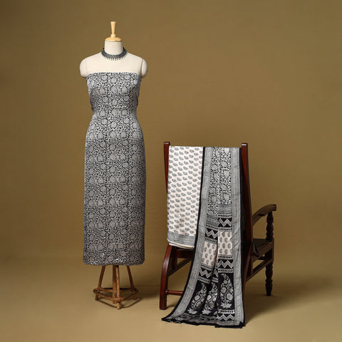 This bagh hand block printed modal silk 3pc dress material is crafted using traditional techniques by master artisan Umar Faruk Khatri from Madhya Pradesh. The smooth and elegant modal silk fabric offers all-day comfort and effortless style, making it a perfect choice for both everyday wear and festive occasions.
