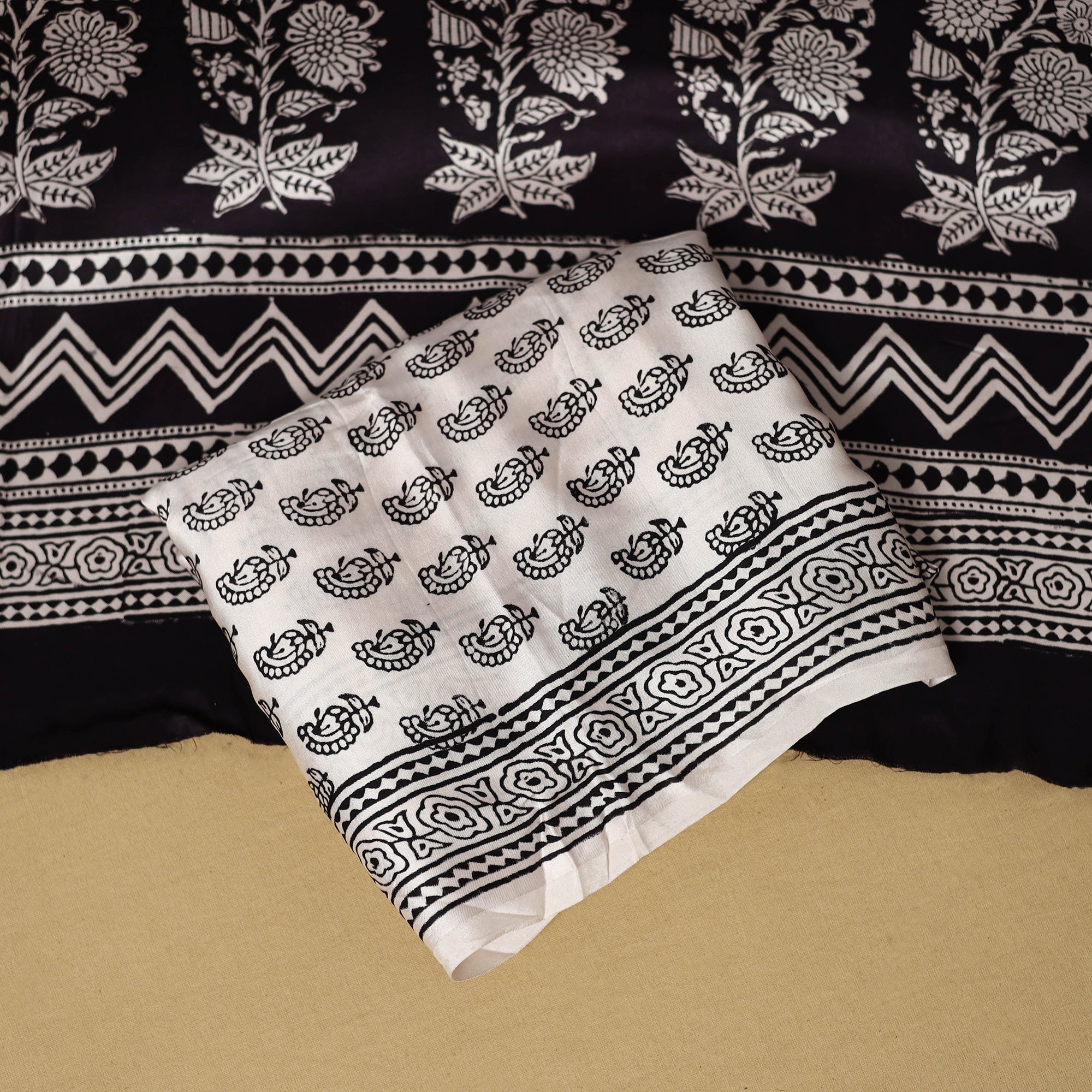 Black - Natural Dyed Cotton Hand Block Bagh Print Fabric 17