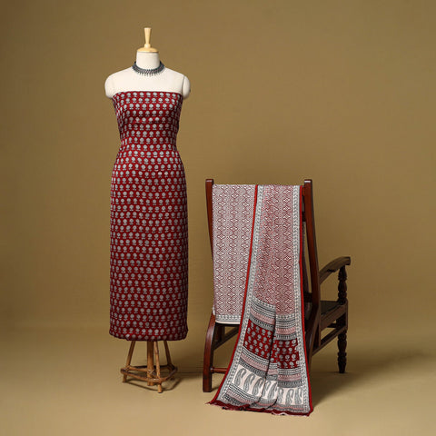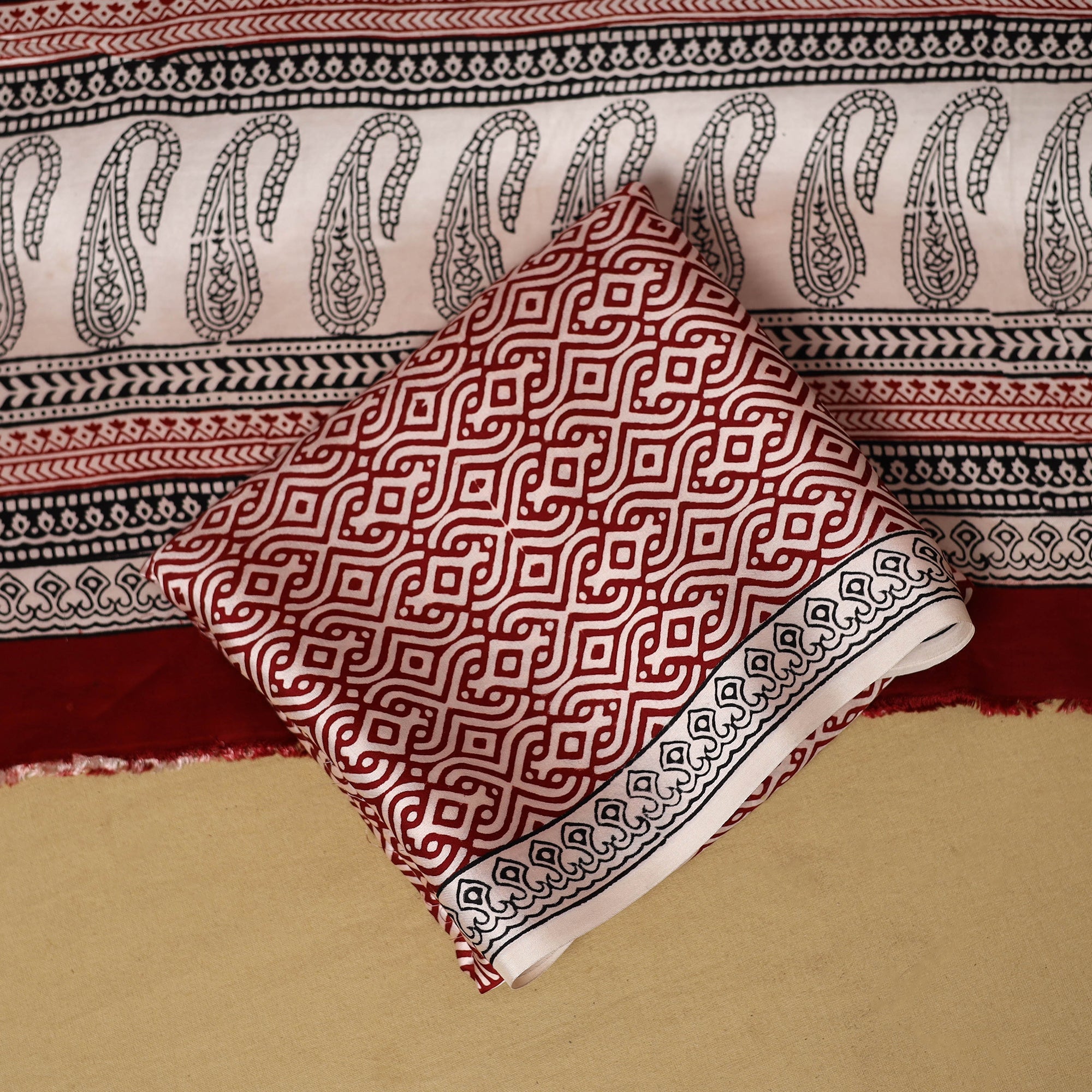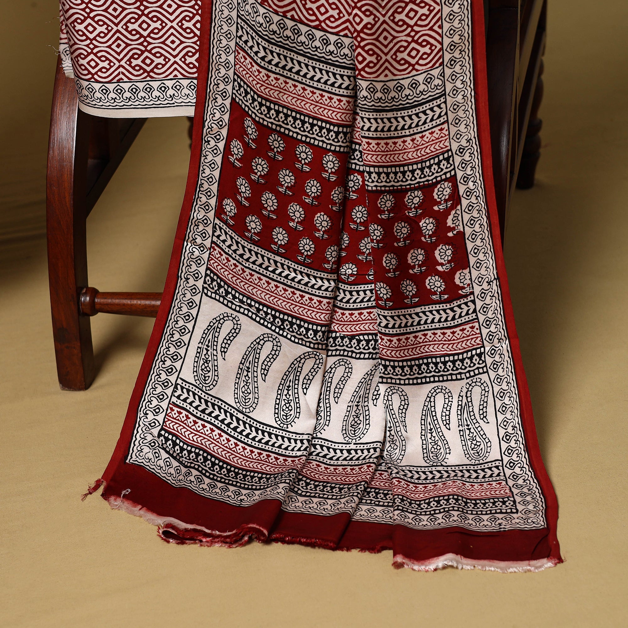 This bagh hand block printed modal silk 3pc dress material is crafted using traditional techniques by master artisan Umar Faruk Khatri from Madhya Pradesh. The smooth and elegant modal silk fabric offers all-day comfort and effortless style, making it a perfect choice for both everyday wear and festive occasions.