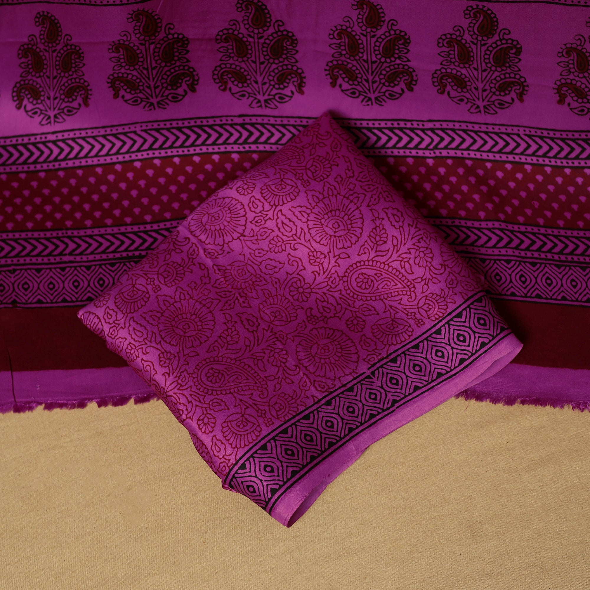 This bagh hand block printed modal silk 3pc dress material is crafted using traditional techniques by master artisan Umar Faruk Khatri from Madhya Pradesh. The smooth and elegant modal silk fabric offers all-day comfort and effortless style, making it a perfect choice for both everyday wear and festive occasions.