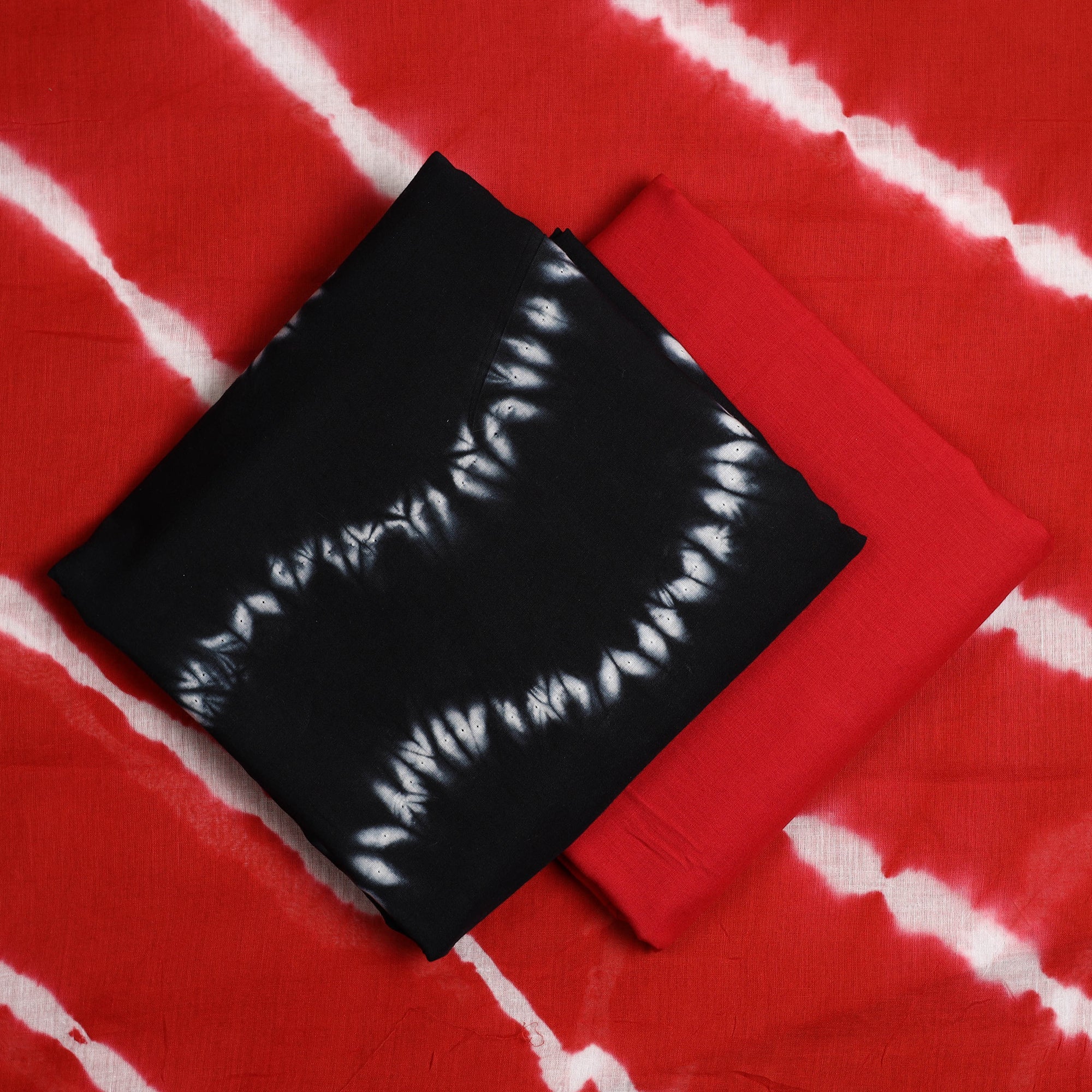 This stunning black 3pc mul cotton tie-dye shibori dress material highlights the intricate beauty of the traditional shibori technique. The hand-dyed kurta and dupatta, meticulously crafted with clamps or stitches, create mesmerizing and unique patterns, while the plain cotton bottom adds a touch of elegance.