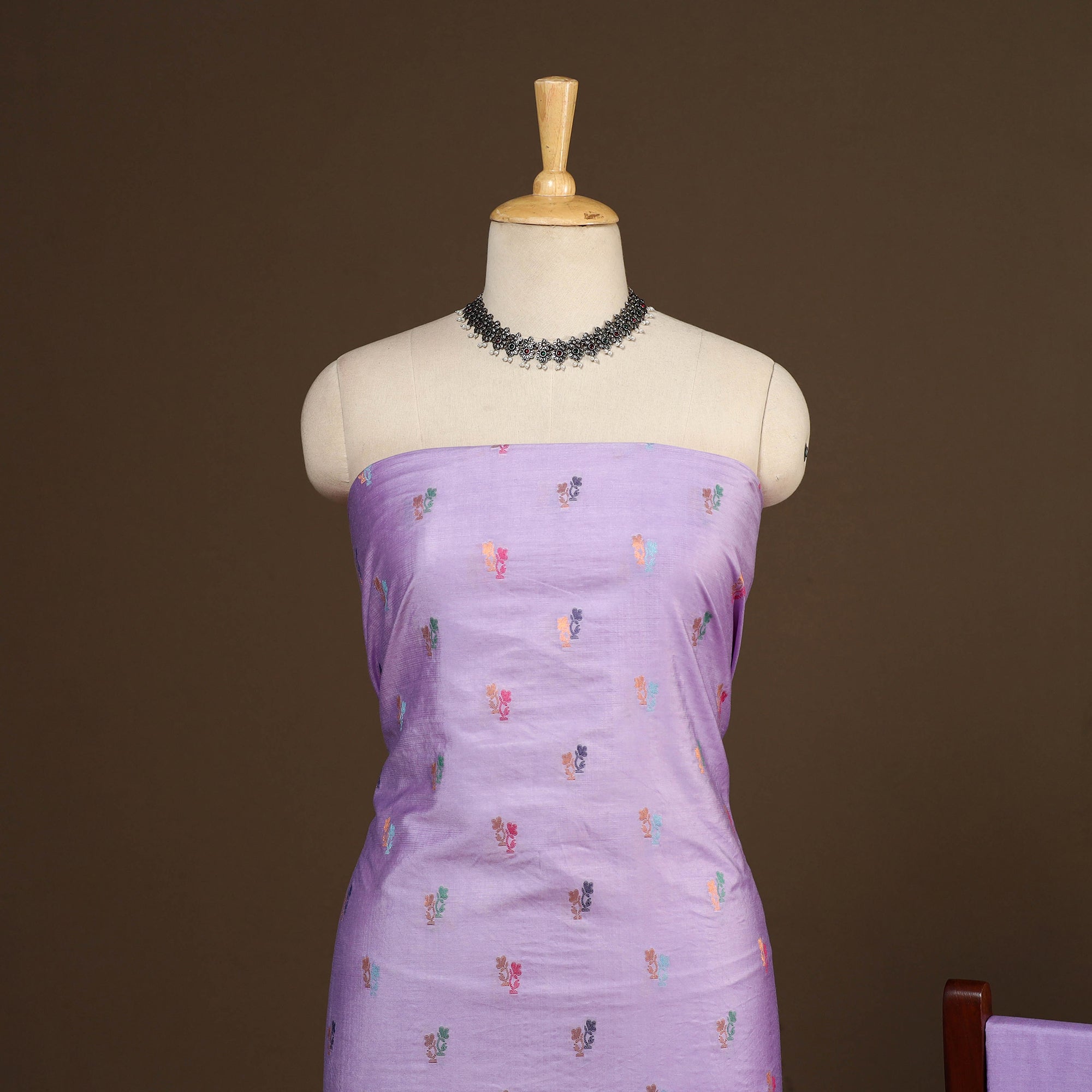 Purple - 3pc Silk Cotton Meena Weaving Unstitched Banarasi Dress Material 07